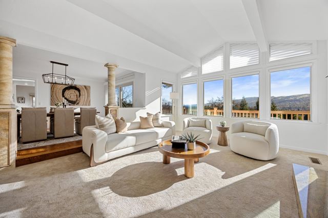 Located in Danville’s coveted westside, this cul-de-sac estate sits on nearly 1 acre with sweeping views of the Las Trampas Hills and offers an exceptional, thoughtfully designed layout. The home features 5 beds, 2.5 baths, 3,106 sqft of living space and hardwood flooring throughout the main living areas. The formal living room features vaulted ceilings, a wall of windows, new carpeting, & flows seamlessly into the formal dining room. Stunning hillside views grace every south-facing room & living space. The remodeled kitchen is appointed with Viking appliances including a 6-burner cooktop & double ovens, custom cabinetry, large center island, walk-in pantry, & designer French hood. The adjoining family room offers a custom entertainment center, wet bar w/ wine refrigerator, & direct access to the backyard, creating effortless indoor-outdoor flow. The primary suite provides a private retreat w/ deck access, dual closets, & a spa-like bath w/ soaking tub and scenic views. Outdoor amenities include a landscaped, low-maintenance yard, decorative pond w/ waterfall, rose garden, & expansive usable land w/ potential for gardening or a vineyard. Located just minutes from downtown Danville, parks, trails, Diablo Country Club, & Highway 680, this home blends privacy, luxury & convenience.