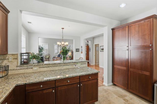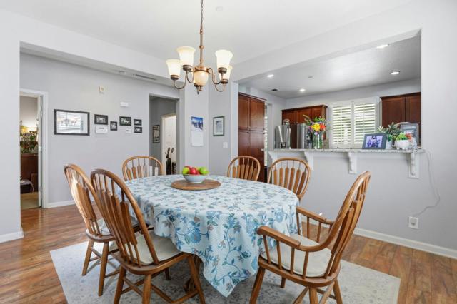 Originally built as a model home, this elegantly appointed residence was designed to showcase quality craftsmanship, thoughtful upgrades, and timeless appeal. Offering 3 bedrooms plus a den/office and 3 full bathrooms, the home features upgrades throughout, including granite kitchen countertops and premium water- and scratch-resistant wood-composite flooring, blending beauty with durability. Plantation shutters adorn the windows, adding a classic, upscale finish. Exceptional curb appeal welcomes you with a covered front porch, ideal for quiet mornings or relaxed evenings enjoying the neighborhood. A covered breezeway leads to the attached three-car garage, combining convenience with architectural charm. The spacious primary suite serves as a private retreat, featuring a walk-in closet and a spa-inspired bathroom with a garden soaking tub, perfect for unwinding. Thoughtfully designed with both style and functionality in mind, this home offers a refined yet comfortable living experience. This is a home designed to be lived in and loved, offering comfort, quality, and a welcoming sense of place from the moment you arrive.