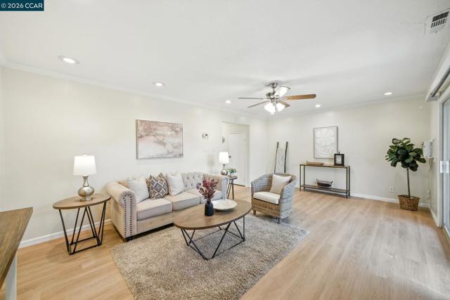Stylish End-Unit Townhome in Prime Colony Park Location! This spacious 2-story home offers peace and privacy at the back of the complex with serene greenbelt views. Inside, enjoy a beautifully updated kitchen, rich wood flooring, dual-pane windows, recessed lighting, crown molding, and tasteful neutral tones throughout. Thoughtful features like ceiling fans, two private patios, and a primary suite with a private deck overlooking the pool and greenery make this home both comfortable and inviting. A rare end-unit opportunity in an excellent community — Don’t miss it!