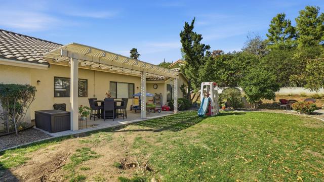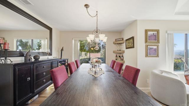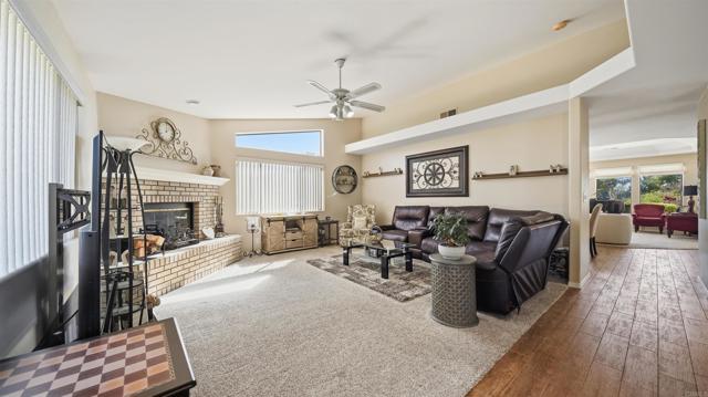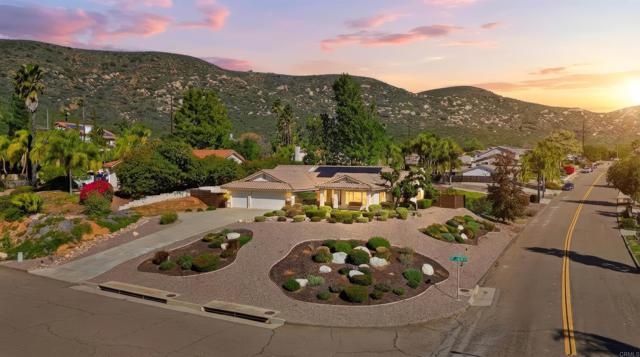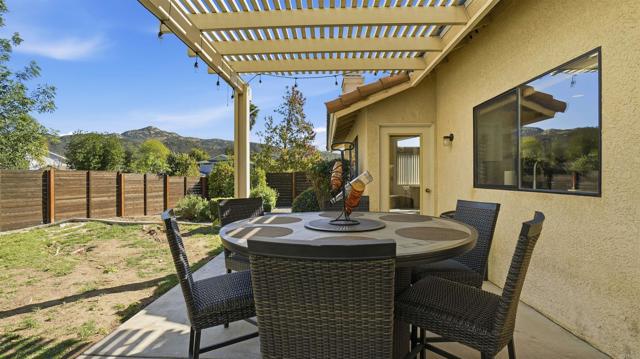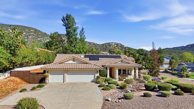 Beautiful corner lot single-story in San Diego Country Estates home set on an elevated corner lot with stunning mountain views from open and bright living areas. The home features a fully upgraded, custom-designed kitchen with ZLINE cooktop, built-in wall unit with microwave, convection oven, dual-zone wine refrigerator, warming drawer, and newer butcher block prep station that opens to family room with brick fireplace and vaulted ceilings. Yard is ideal with fruit trees, and a Alumawood pergola. 4 spacious bedrooms, primary suite with french door to wood like tile flooring, and laundry room with custom storage to name a few. MAJOR UPGRADES: new roof (May 2024), solar system with backup battery, and a comprehensive private well filtration and treatment system with nitrate removal, water softening, UV protection, and reverse osmosis drinking water at the kitchen sink — delivering high-quality water with NO MONTHLY BILL. The exterior has been enhanced with new perimeter fencing and gates. This vibrant community offers resort-style amenities, including two pools (one heated year-round), pickleball and tennis courts, multi-sport courts, and kids’ parks. Enjoy miles of nearby hiking and equestrian trails, plus a covered picnic pavilion with BBQs and a stage for summer Concerts in the Park. It’s lifestyle, community, and fun, all in one place.