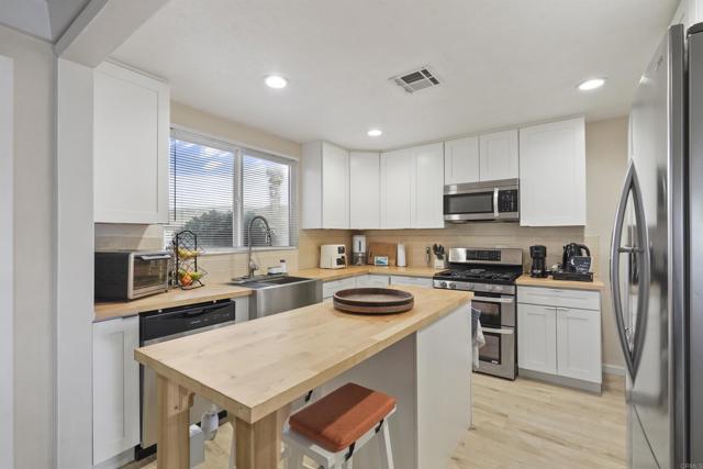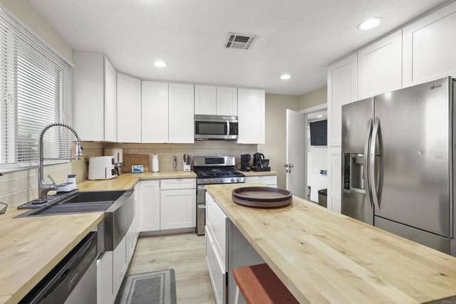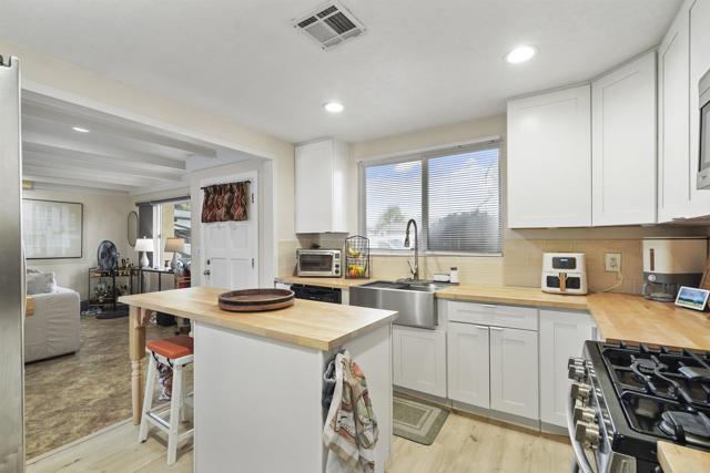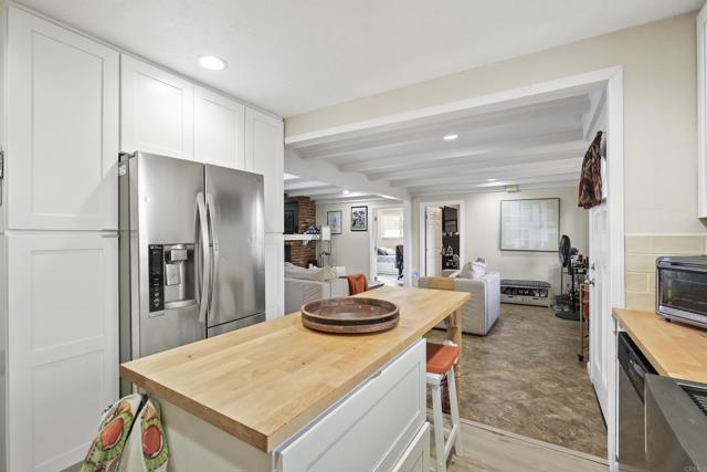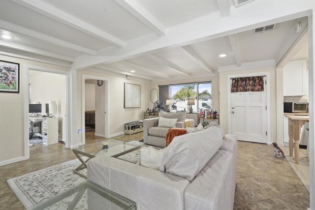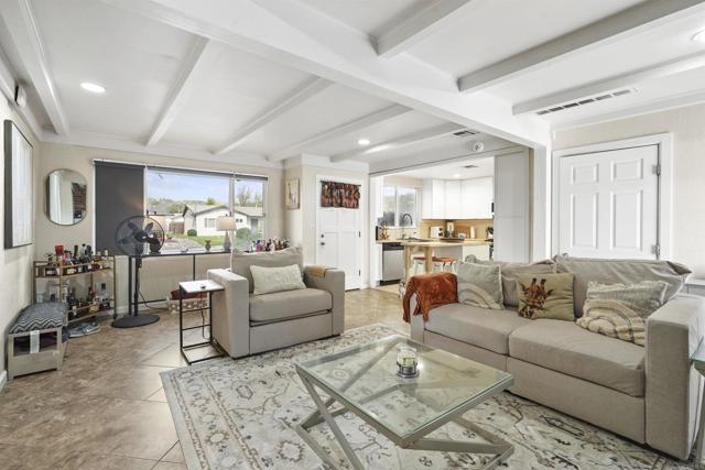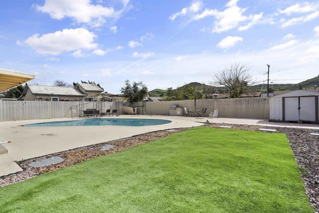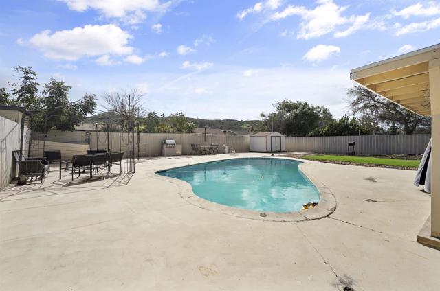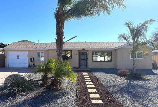 Exceptional value for this charmingly updated & turn-key starter home with a pool on a large lot! Send your kids to high-ranked Poway Schools. The open kitchen has been updated with newer cabinets, block wood counters, an island and stainless steel appliances. Both bathrooms are updated and include granite counters, new lighting and custom tile work that match the tile floors throughout. A cozy fireplace welcomes you to the living room and wood box beam ceilings give an added touch of classic design.The home has a newer roof & recessed lighting throughout as well as a level 2 EV charger for your electric car. Enjoy the simplicity of low maintenance landscaping and save on water bills, too. Enjoy mountain views & summer BBQs by the pool in this oversized backyard with room to grow/make it your own. Hurry this home will go fast!