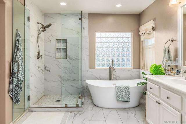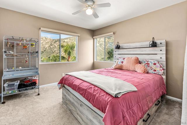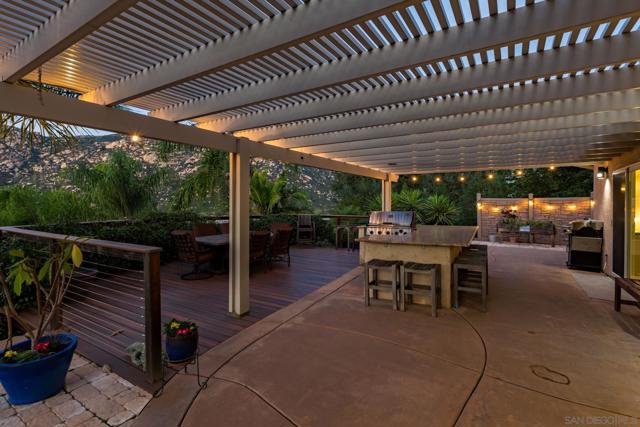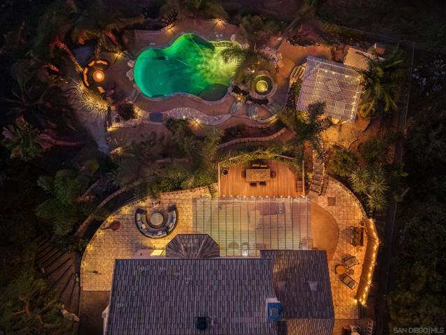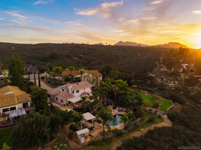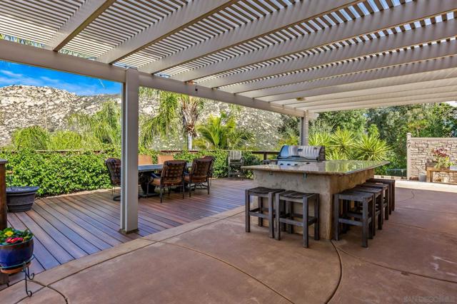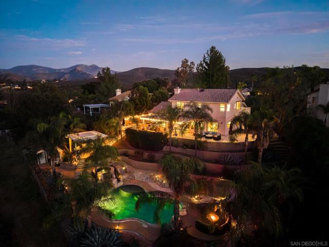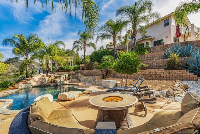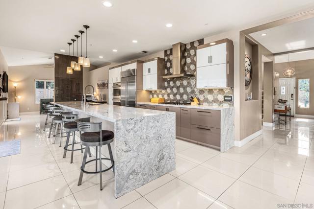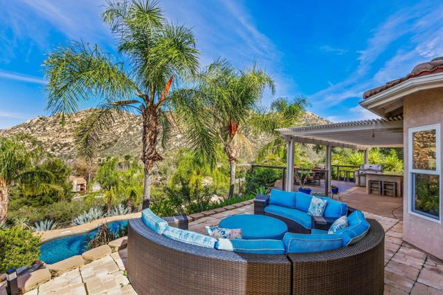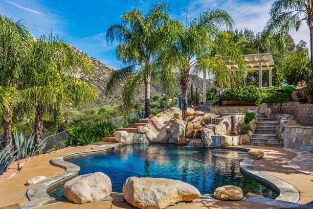 Welcome to the ultimate entertainer’s paradise! This custom 4 bedroom, 3 bath home has been meticulously updated and is ready to host your next gathering. The main floor is a seamless blend of style and function, featuring elegant marble and tile flooring throughout. The massive gourmet kitchen is the heart of the home, designed for grand-scale entertaining. It boasts stunning waterfall quartz countertops and a suite of top-tier stainless steel Wolf and SubZero appliances, including a double oven, drawer microwave, bar fridge, cooktop, fridge/freezer, and wine cooler. Featuring soft-close cabinetry, this kitchen is as functional as it is beautiful. The main level also includes a spacious bedroom and a spa-like full bath. Upstairs, the private living spaces are a true retreat, featuring two recently updated, luxurious bathrooms. You’ll find two generous secondary bedrooms and the spectacular Primary suite, which offers its own private deck and an exquisite en-suite with shower, tub, dual vanities and a deep walk-in closet. The backyard is truly a year-round destination with incredible, sweeping views to the west. Dine al fresco with the convenience of the outdoor kitchen, or simply relax by the sparkling, resort-style pebble tech pool, complete with a waterfall feature and waterslide. Enjoy Ramona's famously beautiful sunsets from your private oasis. The home is equipped with a modern 7.5kW owned solar system (31 panels), a tankless water heater, a Waterboy filtering system, and room darkening shades throughout. Ideally located, you are walking distance to San Diego Country Estate's Ramona Oaks Park and the Cedar Creek Falls trailhead, and just a 15-minute drive to downtown Ramona. Experience the full Country Estates lifestyle, which includes a clubhouse with a restaurant, sports bar, event space, boutique hotel, 18-hole golf course, tennis and pickleball courts, hiking and biking trails, a 5-acre park, and community pools and spa. This is more than a home; it’s a destination for the best of Southern California living. Come and see!