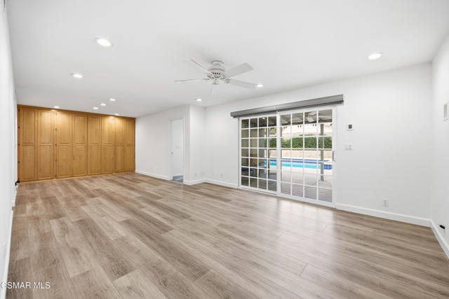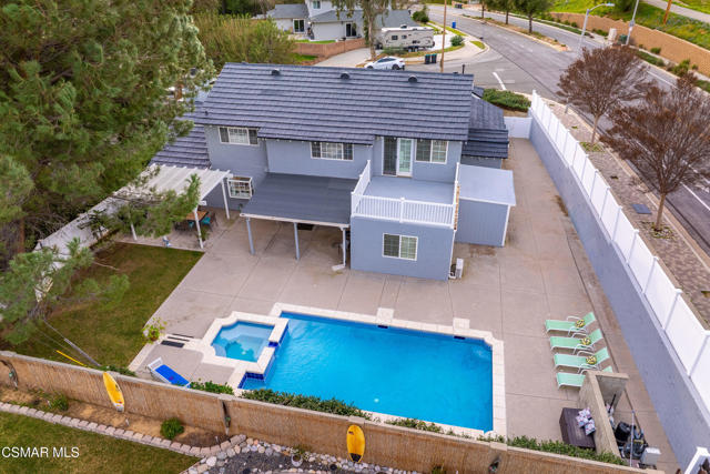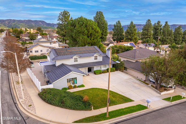 Welcome to 3598 Scofield Ave. in the desirable Nob Hill neighborhood of Simi Valley. This beautiful two-story home features 6 bedrooms and 3 full baths, offering 2,574 sqft of well-designed living space. The home sits on a generous 9,147 sqft corner lot with great curb appeal and scenic mountain views. Inside you'll find a light and bright layout with newer laminate flooring in many of the rooms, fresh paint, recessed lighting, dual-pane windows, and smooth ceilings. The updated kitchen features Corian countertops, stainless steel appliances, a breakfast bar, garden window overlooking the pool, and a breakfast nook. This home also boasts a spacious living room with built-in cabinetry and a cozy fireplace, plus a large family room that flows into the dining area with extra cabinetry, offering great versatility and seamless access to the backyard.The main level includes a spacious added bedroom with pool views and its own AC unit, along with a bonus office/gym room offering flexible space ideal for a home office, playroom, or guest accommodations, plus a convenient laundry room with a utility sink.Upstairs features four bedrooms with custom closet organizers, including a primary bedroom with dressing area, dual closets, and French doors leading to a balcony with serene mountain views.Step outside to a private backyard ideal for entertaining, featuring a large, covered patio with lighting and ceiling fan, second patio cover, perfect for outdoor dining, large pool and spa, great lawn area, huge side yard with shed, and gorgeous mountain views. An oversized attached two-car garage, huge driveway with RV/trailer potential, and a spacious front lawn complete the package. Conveniently located near shopping, dining, theaters, parks, and the library--this is a must-see home!