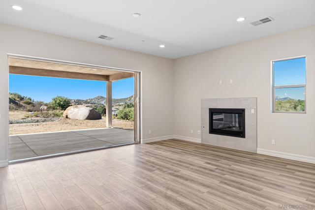 Brand-new construction in the gated Trevi Hills community, ideally located atop Muth Valley Road in a peaceful mountain setting. This single-level home offers a well-balanced and highly livable floor plan with thoughtful separation of spaces and refined designer finishes throughout. The home centers around a spacious great room that serves as the primary gathering space, offering an open and welcoming environment for everyday living and entertaining. A separate dining area provides flexibility for hosting meals and gatherings, while maintaining a comfortable flow between living spaces. The residence includes four full bedrooms, each featuring upgraded designer finishes and a cohesive, modern aesthetic. The primary suite is designed as a private retreat, complemented by a well-appointed bathroom and generous closet space. A disappearing glass wall fully retracts into the wall, opening the great room to the covered California Room and extending the living space outdoors. This seamless indoor-outdoor connection enhances the home’s functionality and allows for year-round enjoyment of the surrounding environment. Additional highlights include a generous three-car garage, quality construction, and curated interior details that elevate the overall living experience. Set within a gated community and within driving distance to San Diego’s beaches, dining, and employment centers, this home offers an excellent opportunity to enjoy brand-new construction in a serene hillside location. This brand-new builder residence offers a thoughtful blend of comfort, functionality, and design within the gated Trevi Hills community. Positioned atop Muth Valley Road, the home enjoys a quiet mountain setting that provides privacy and a sense of retreat while remaining connected to the broader San Diego lifestyle. The single-level floor plan is designed for ease of living, with a spacious great room that anchors the home and creates a natural gathering place for family and guests. The separate dining area offers a dedicated space for meals and entertaining, enhancing the home’s versatility without interrupting the flow of the main living areas. Four full bedrooms provide ample space for family, guests, or flexible use, each finished with upgraded designer selections that create a cohesive and elevated look throughout the home. The primary suite serves as a private sanctuary, featuring a well-appointed bathroom and a comfortable, restful layout. A disappearing glass wall allows the great room to open fully to the covered California Room, extending the living space outdoors and supporting an indoor-outdoor lifestyle well suited to Southern California living. This feature enhances both daily enjoyment and entertaining opportunities. The home also includes a generous three-car garage, offering ample room for parking, storage, or recreational equipment. Thoughtful design choices, quality construction, and curated finishes come together to create a home that feels polished, practical, and inviting. Located within a gated community and within reasonable driving distance to San Diego’s beaches, dining, shopping, and recreational amenities, this residence presents an excellent opportunity to own a brand-new, well-designed home in a peaceful hillside setting.