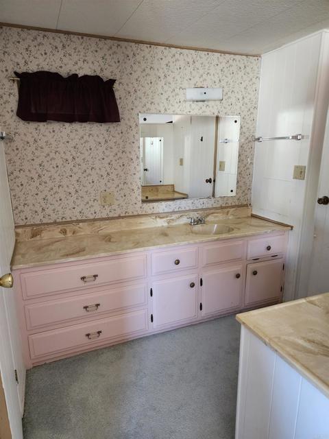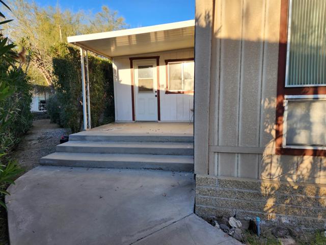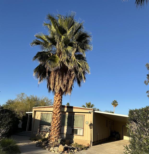 2 BR, 2 BATH: At the beautiful Roadrunner Golf & Country Club including golf, heated pool, jacuzzi, tennis and pickle ball courts. Large, active 55 plus community with club house!!! This retro manufactured home boasts a large living room for entertainment. Culd-e-sac unit with enclosed 10x20 patio room. Electric fireplace adds ambiance to toasty Borrego evenings! Pink vintage kitchen with coordinating dinette cabinetry. Poker table, exercise equipment. Carport parking. 3/4 garage with work bench art studio. Central air. Beautiful front yard with palm tree. Financing available!