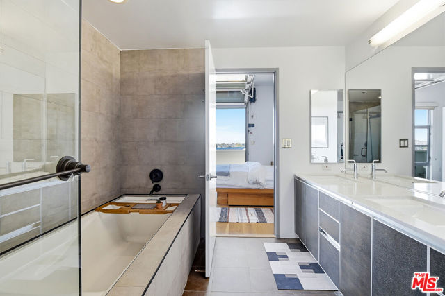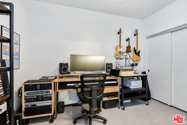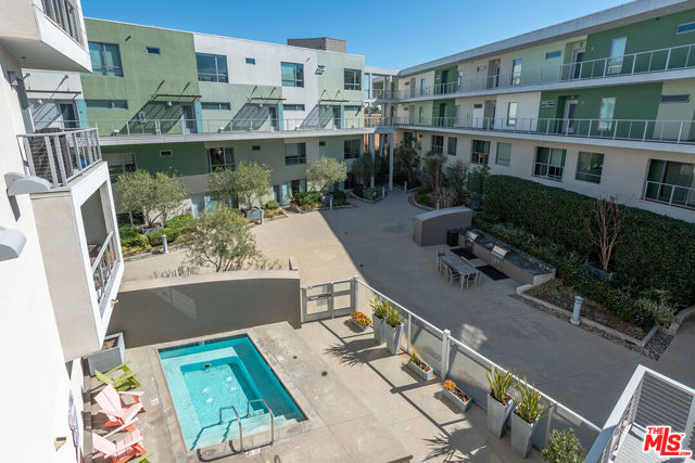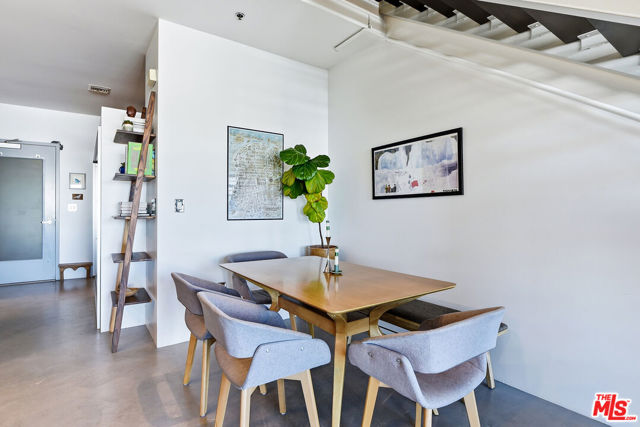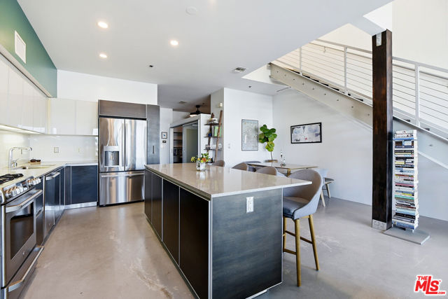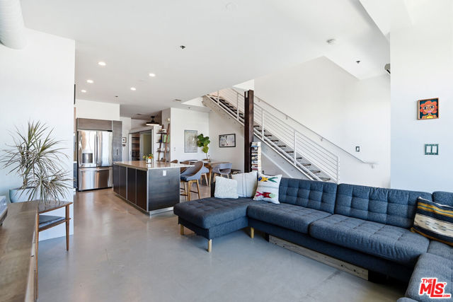 Located in the coveted T-Lofts, this top-floor, quiet urban loft offers open, light-filled living defined by high ceilings, an expansive open floor plan, and a modern industrial aesthetic. Designed for both style and function, the home provides exceptional privacy with no unit above, excellent sound insulation, and west-facing exposure that captures warm sunset light. The main level showcases classic loft elements with polished concrete floors, soaring ceilings, and oversized windows that fill the space with natural light and a refreshing ocean breeze. The open-concept layout seamlessly connects the living, dining, and kitchen areas, well suited for entertaining, working from home, or everyday living. The kitchen features Italian cabinetry, Caesar-stone countertops, and stainless steel appliances, including a brand-new refrigerator and microwave/air fryer. The interior was freshly painted in 2024 for a move-in-ready presentation. Upstairs are two bedrooms, including a spacious primary suite that continues the loft-inspired design with newly installed flooring and a custom Container Store Elfa walk-in closet system. A distinctive industrial-style door opens directly from the primary bedroom, offering a unique indoor-outdoor connection and the opportunity to enjoy nighttime sky views from the bedroom. The renovated primary bathroom features double sinks, an oversized shower, a separate soaking tub, and Kohler fixtures.A bonus space on the main level provides additional flexibility and can be used as a home office, creative studio, or reading nook ideal for today's work-from-home lifestyle. Two private outdoor areas further enhance indoor-outdoor living: a west-facing balcony on the main level and an upper deck with a roll-up door, ideal for entertaining or enjoying sunset views .T-Lofts amenities include a landscaped courtyard, BBQ area, jacuzzi, fitness center conveniently located on the same level as the unit, secure entry, EV charging stations, bike racks, and two tandem parking spaces. Guest parking is available with approximately 35 spaces for residents and visitors. Ideally situated in a highly walkable location near Sawtelle's dining and shopping, with convenient access to the Expo Line, Santa Monica, Brentwood, Century City, and Beverly Hills, this home offers a well-balanced blend of design, comfort, and urban convenience.