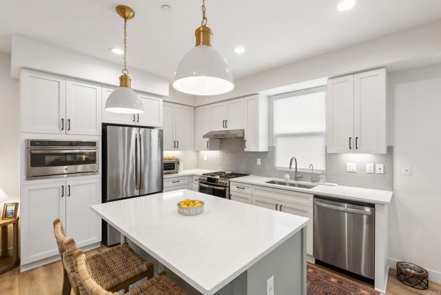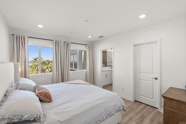 Looking for that "new home" feel in the heart of Pacific Highlands Ranch? Look no further. Built in 2021, this Carmel Valley townhome is the definition of turnkey. This modern residence offers the luxury of newer construction with a bright, open-concept floor plan featuring premium luxury vinyl plank flooring (installed in 2023) throughout the main living area. The light-filled kitchen sparkles with quartz countertops, timeless Shaker cabinets, an island with added cabinetry (installed in 2023) for additional storage, custom pendant lighting over island, and stainless steel appliances. Designed for ultimate privacy, both bedrooms offer the flexibility and convenience of an ensuite. Enjoy San Diego’s coastal breeze on your large, covered patio, a rare private outdoor sanctuary to enjoy dining with a sunset backdrop. Modern conveniences include an attached 2-car garage and in-unit laundry. HIGHLIGHTS: Exceptional Location – Steps to parks, trails, The Village at Pacific Highlands Ranch retail & lifestyle center with 40+ dining/retail/fitness options. Outdoor Lifestyle – Easy access to nature trails, open spaces, and Pacific Highlands Ranch Rec Center. Close proximity to highly rated schools. (Sycamore Ridge/Pacific Trails/Canyon Crest Academy). With quick access to the 56 and Del Mar beaches, this home offers the perfect blend of location, style, comfort, and elevated convenience. Welcome home!