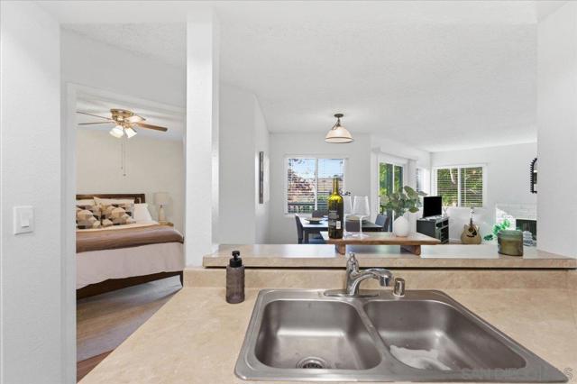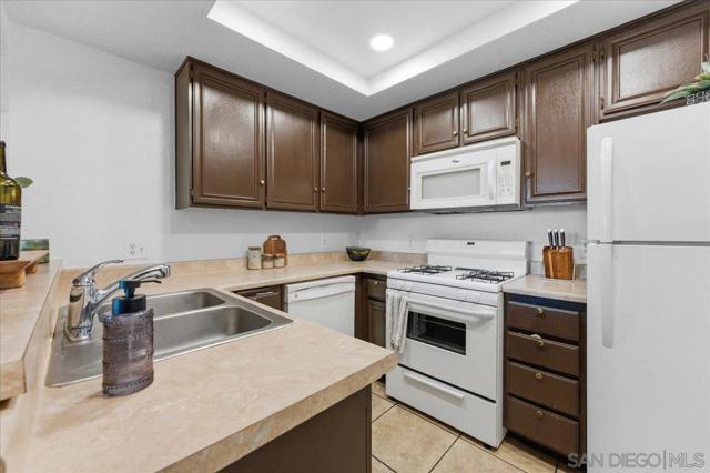 Welcome to this well-maintained 2-bedroom, 2-bath end-unit condominium in the desirable Ranchwood community of Spring Valley. Offering 916 sq ft of thoughtfully designed single-level living, this residence provides enhanced privacy with only one shared wall and an abundance of natural light. The functional floor plan flows seamlessly from the bright living area to a covered balcony—perfect for relaxing in the peaceful surroundings. The kitchen includes in-unit stacked washer and dryer, and recent updates make the home move-in ready. Both bedrooms are comfortably sized, with the primary suite offering private access to the outdoor space. This community feels like living at a country club—without the hefty membership dues. Residents enjoy a pool, spa, tennis courts, BBQ areas, a small park-like green space, and mountain views throughout the complex. The setting is quiet, serene, and well maintained. HOA dues include water, trash, and common area maintenance for added convenience. Covered parking with dedicated storage is included. Centrally located near shopping, dining, parks, and major freeways, this home offers privacy, comfort, and exceptional amenities in an established Spring Valley neighborhood. Parking spot 33