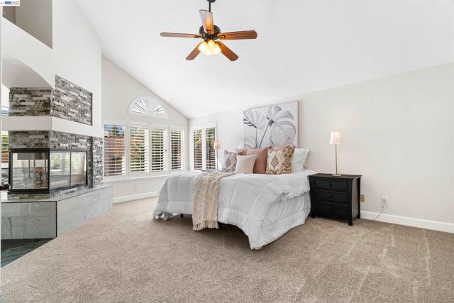 Breathtaking views of Mt. Diablo with an exceptional court location. Five bedrooms (full bed and bath downstairs) & 3 baths. Remodeled kitchen features custom cabinets, induction stove, gorgeous granite countertops & backsplash, recessed lighting, a large center island, separate coffee/entertaining bar, a convenient eating area & a nice pantry closet. The open floor plan includes a family room with gas fireplace, living room, formal dining room with vaulted ceilings & separate laundry room. Large and private owners suite includes a spacious walk in closet, soaking tub, and gas fireplace. Other features of this home include rich oak plank hardwood flooring downstairs, impressive center staircase, gorgeous front doors, plantation shutters. Large 3 car garage. New $50,000 solar panel system creates awesome results, new Bosch HVAC system. Professional landscaping w/ automatic irrigation & lighting, lap pool w/spa (with amazing views). Numerous upgrades! Easy access to schools, walking paths, Mt. Diablo State Park& downtown Clayton.