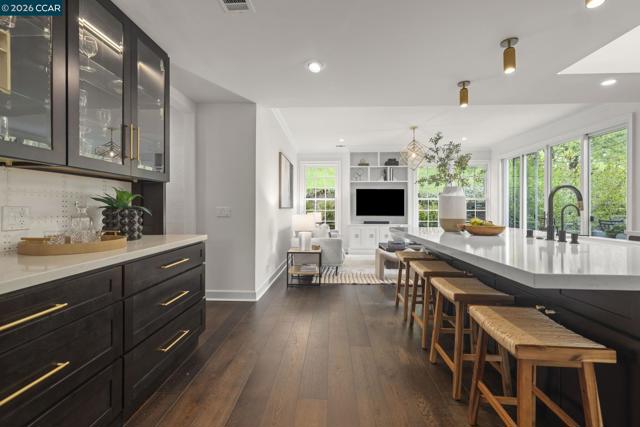 GORGEOUS New Listing in Parkmead! Don’t miss this 4 bdrm, SINGLE-LEVEL home in coveted Parkmead, near downtown Walnut Creek. Not your typical Parkmead rancher, this home surprises as you step into its chic, designer space and its thoughtfully remodeled floor plan. 2 living rooms and an extraordinary dining room provide the space you need for all occasions. And the kitchen -oh the kitchen! – is the crown jewel of the interior, perfectly set at the center of the home. Adorned with rich cabinetry, marble backsplashes with brass details, a custom hood, and sleek GE Café appliances, this showpiece space radiates smart sophistication, functionality and STYLE. The luxe continues with matte oak floors, updated bathrooms, custom millwork and crown moulding, and…wait for it...mother of pearl wallpaper you must see to appreciate! The clean lines and elegant simplicity of the private rear yards are offer 2 separate areas to dine, entertain or play with children and pets. All this and more, including an enviable walk-to-town, shopping and top-tier schools location. This is a sweet gem you need to see SOON.
