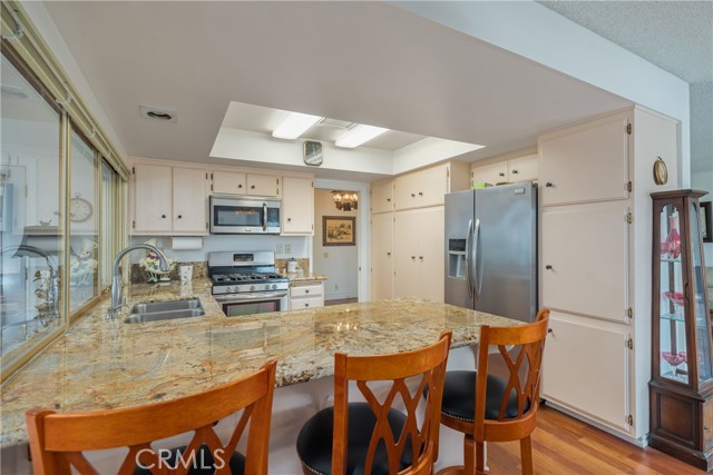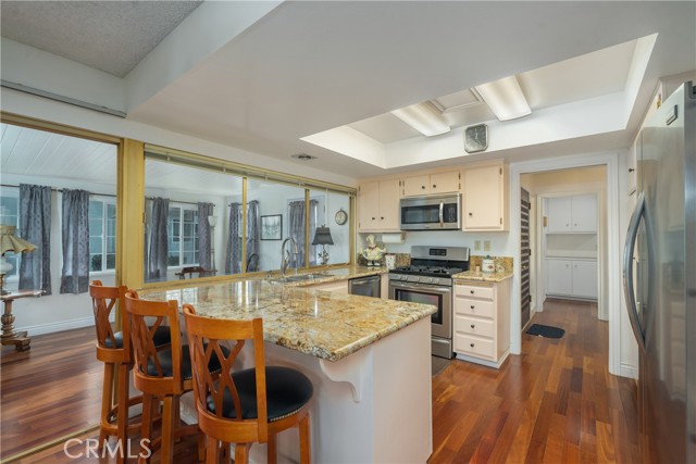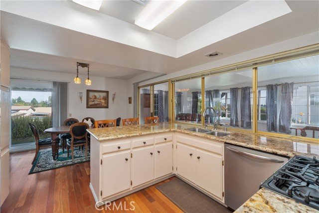 Welcome to this charming single-story 1 bedroom, 1 bathroom home located in the highly desirable 55+ Oceana community in Oceanside. This well-maintained residence offers comfortable coastal living just minutes from beautiful beaches, shopping, dining, and major freeways. This light and bright home features an open living and dining area, a functional kitchen with ample cabinet space and granite countertops and dedicated dining space. Brazilian hardwood floors add elegance and easy care to the house. The spacious primary bedroom is designed for comfort and convenience. Large glass doors allow plenty of natural light in the house and peek a boo views of the mountains. There is an enclosed sun room for added space. The bathroom has been tastefully remodeled making this home move in ready. The single-level floor plan provides easy accessibility, making it ideal for low-maintenance retirement living. Whether you are looking to downsize, purchase a vacation retreat, or enjoy an active and social senior lifestyle, this welcoming community features popular activities such as pickleball, water aerobics, golf, and group exercise classes.
