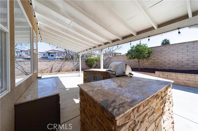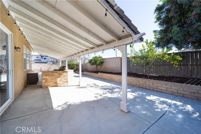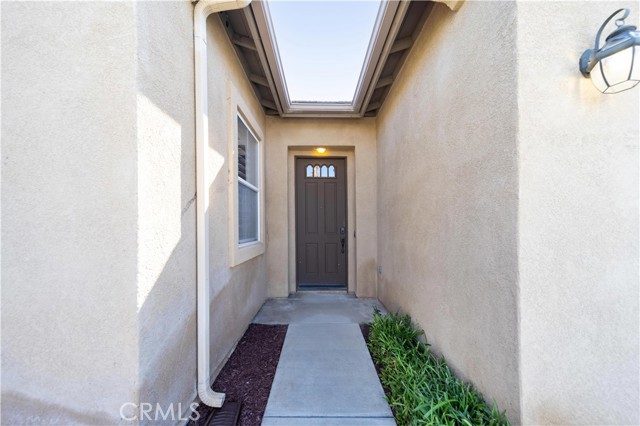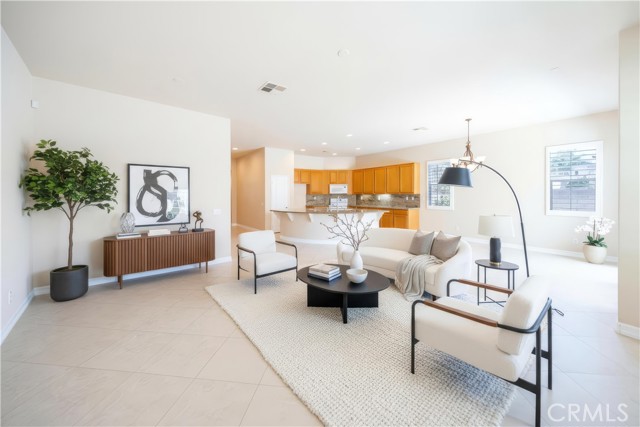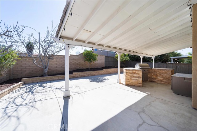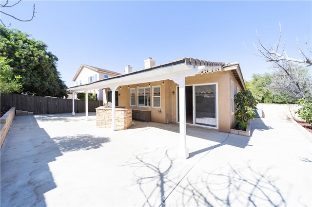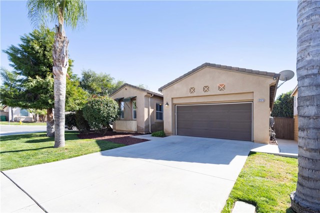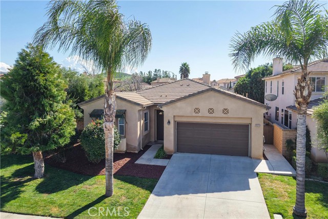 Experience the ease and comfort of single-story living in this beautifully maintained corner-lot home located in the highly regarded Temecula Valley Unified School District. With its open layout, soaring 10-foot ceilings, and abundant natural light, this residence offers a welcoming atmosphere designed for both everyday living and effortless entertaining. From the moment you arrive, the mature olive tree and clean, low-maintenance landscaping create inviting curb appeal. Inside, custom large-format tile flooring runs throughout the home, no carpet, paired with neutral tones and plantation shutters for a timeless, cohesive look. The thoughtfully designed floor plan maximizes every square foot, offering comfortable flow with no wasted space. At the heart of the home is a spacious open-concept kitchen and great room. The chef’s kitchen features a massive center island with seating for six or more, generous counter space, and seamless connection to the dining and living areas, ideal for gatherings both large and small. A cozy fireplace anchors the great room, while pre-wiring for surround sound enhances your entertainment experience. An office nook with built-in desk and cabinetry provides a functional work-from-home or study space. Step outside through one of two sliding glass doors (from the dining area and the primary bedroom) to enjoy the private backyard retreat. A full-length covered patio, built-in BBQ, fruit trees, and block fencing (on two sides) create a setting suited for outdoor dining and relaxation year-round. The low-maintenance yard allows more time to enjoy and less time on upkeep. The private primary suite offers direct backyard access and a spacious en-suite bath complete with soaking tub, dual sinks, and a large walk-in closet. Two additional bedrooms and a full bath provide flexibility for family, guests, or additional workspace.Built in 2004, this 1,853 sq ft home sits on an approximately 6,534 sq ft lot and includes a 2-car attached garage (approx. 432 sq ft). Additional highlights include ample parking, corner lot location, and availability for immediate occupancy. Microwave will be replaced prior to close of escrow. Low taxes and no HOA add to the appeal of this Winchester property.