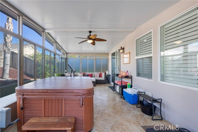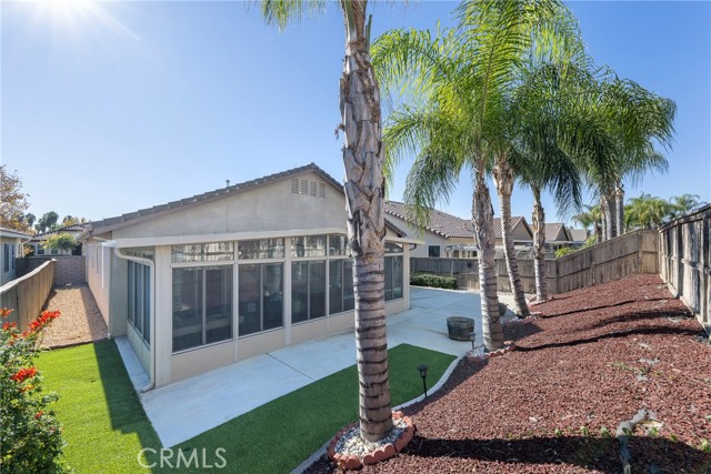 Beautifully maintained single-story home offering approximately 1,660 sq ft of thoughtfully designed living space. This inviting residence features 3 bedrooms plus a private office/den with elegant glass doors, 2 bathrooms, and a spacious 2-car garage. The open-concept layout makes this home ideal for both everyday living and entertaining. The kitchen showcases crisp white cabinetry, generous counter space, and a functional design that flows seamlessly into the dining area and family room. Perfect for hosting guests and family gatherings, this space truly serves as the heart of the home. The family room is warm and welcoming, complete with a cozy fireplace that adds charm and comfort. The primary suite offers a relaxing retreat with wonderful natural light and a beautifully appointed bathroom featuring a separate shower and soaking tub. Each room throughout the home is equipped with large windows that fill the space with bright, natural light. One of the standout features is the perfect glass screened sun room — a bright and airy extension of the home. This versatile space is ideal for a private pool room, home gym, art studio, or a peaceful reading nook. It offers year-round enjoyment and endless possibilities. Step outside to a spacious patio area with low-maintenance landscaping, providing ample room for outdoor dining, entertaining, or customizing your own backyard oasis. Located in a desirable community with resort-style amenities, residents enjoy access to tennis courts and a fully equipped gym. The HOA is called The Oasis, offering a lifestyle that combines comfort, recreation, and convenience. With charming curb appeal, abundant natural light, and exceptional indoor-outdoor living, this home is a true standout.