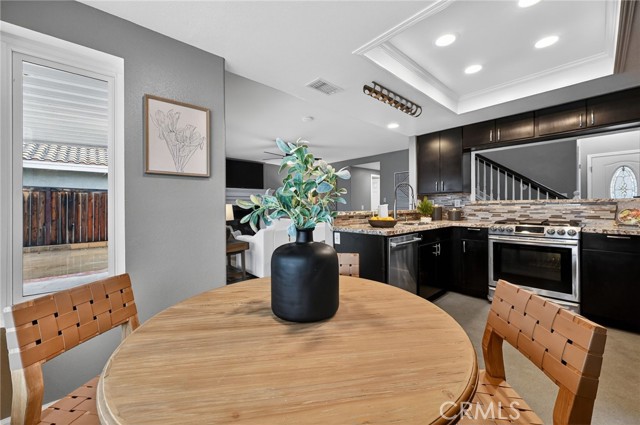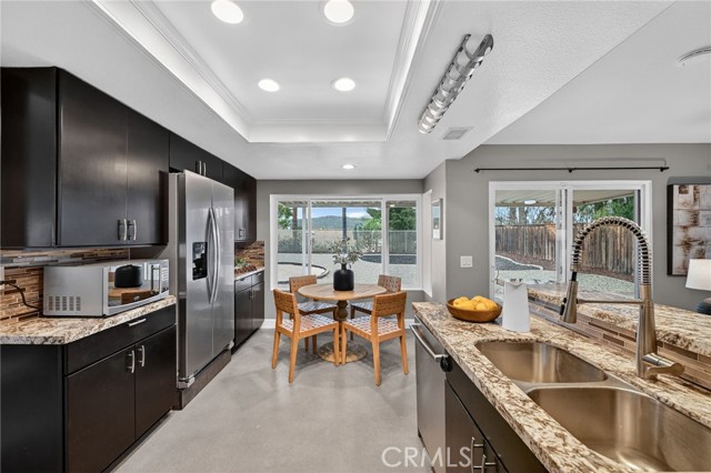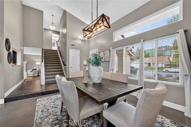 Welcome to this well-maintained 3 bedroom, 2.5 bathroom home located in a desirable Murrieta neighborhood featuring low taxes, no HOA, RV parking, and solar. Positioned on an oversized elevated lot, the home offers added privacy and usable outdoor space. Inside, soaring ceilings and abundant natural light create an open and inviting feel. The floor plan includes formal living and dining areas, a comfortable family room with fireplace, and a custom bar with granite countertops — ideal for entertaining. The upgraded kitchen features stone countertops, stainless steel appliances, ample cabinetry, and a breakfast nook overlooking the backyard. Beautiful top-of-the-line Milgard dual pane windows enhance both efficiency and comfort throughout the home. Upstairs, the primary suite offers a spacious layout, while the secondary bedrooms provide flexibility for guests, office space, or growing households. The expansive backyard includes a large covered patio with plenty of room for entertaining, enjoying the view and ample space for a pool. Additional highlights include gated RV parking and an attached garage. Conveniently located near award-winning Murrieta schools, parks, shopping, and commuter access, this home combines comfort, functionality, and long-term value in this highly sought-after location.