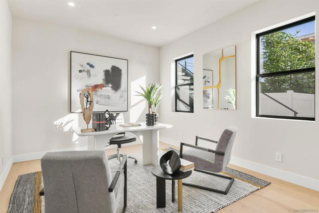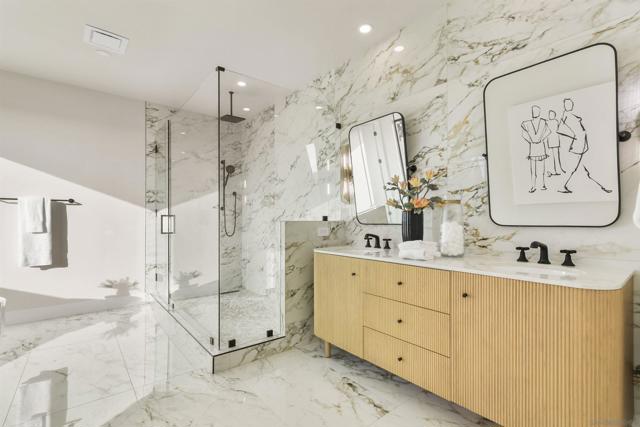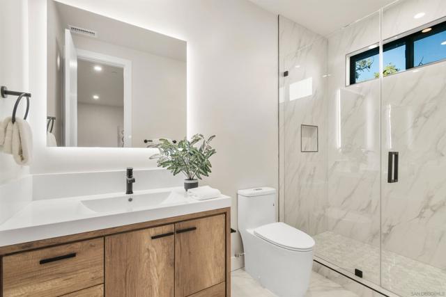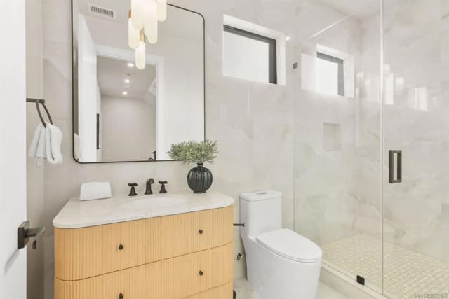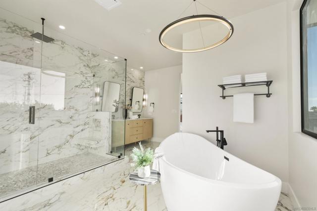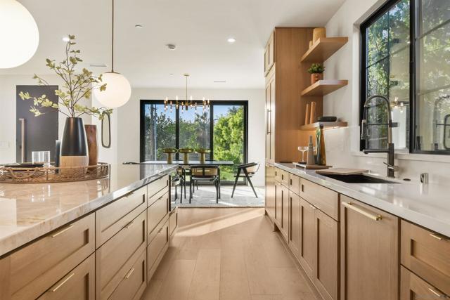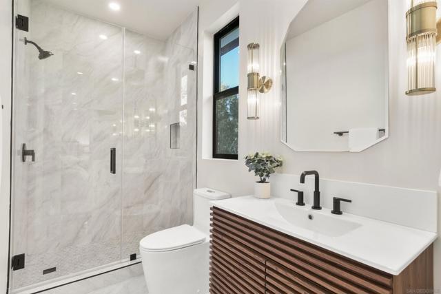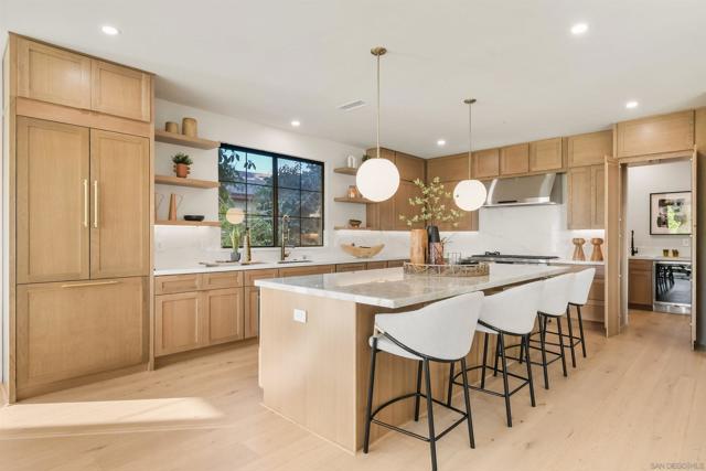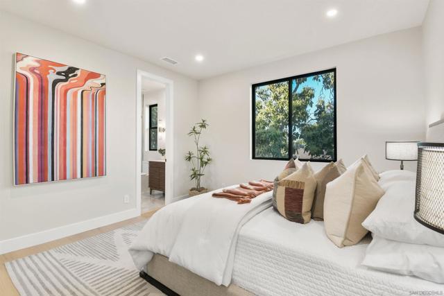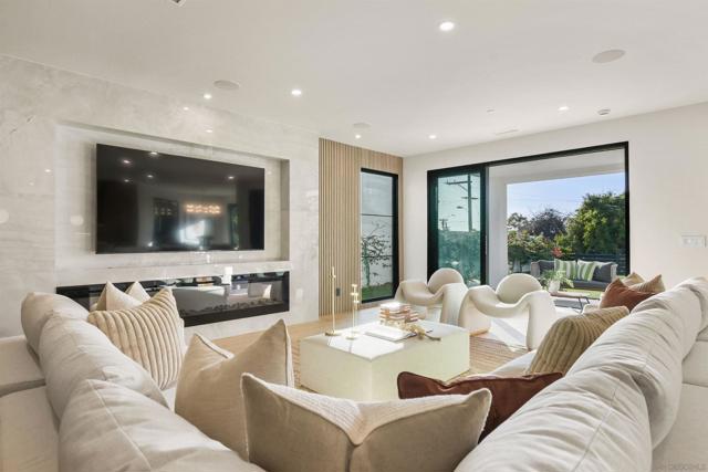 Brand-new Bay Park construction for buyers who want big, modern, and dialed-in. The main home features a sleek chef’s kitchen with white oak cabinetry, quartz counters, a 6-burner Dacor range, and a hidden butler’s pantry with its own sink, fridge, and dishwasher—perfect for entertaining. Warm finishes, designer lighting, and a custom wood-slat accent wall add upscale coastal character. The layout includes four en-suite bedrooms, with a standout primary suite offering a spa-style bath, soaking tub, oversized rain shower, and walk-in closet. A large private front yard creates an inviting yet discreet entry, while the upstairs decks captures Bay Park breezes and sunsets. An enlarged two-bedroom ADU with its own private entrance off the paved alley adds major flexibility for multigenerational living, rental income, or guests, all with elevated views. Energy-efficient upgrades include solar with battery backup. All of this just a short walk to restaurants, coffee, bars, and everything Bay Park has to offer.