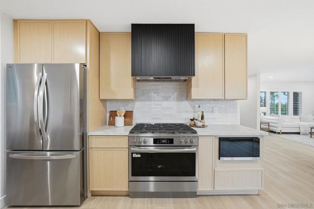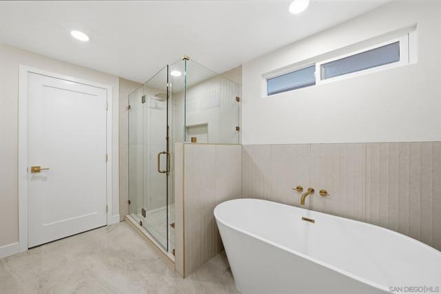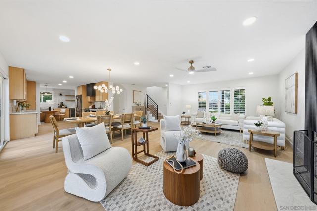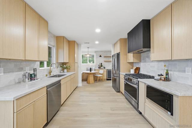 Heart-stopping brand-new luxury remodel in prestigious Bay Ho with sparkling pool and paid-for solar! Nestled on a peak of the hill, enjoy multi-directional views of bay, ocean, city lights, neighborhood, & Mt. Soledad! You'll love the sun-filled open floorplan, spacious kitchen, breakfast nook, large living room with gas FPL. Resort-style backyard with sparkling pool, spa, sauna, covered patio, outdoor BBQ/kitchen, & dramatic "drop-off" views! Top finishes include Taj Majal quartzite counters, Slim Oak Shaker, Hera Linen & Alistair Stone porcelain tile, Calistoga "bleached driftwood" LVP flooring. Consider fencing the front yard for more private space. You'll love living in "real" Bay Ho on a quiet culdesac in a highly-desired executive neighborhood.