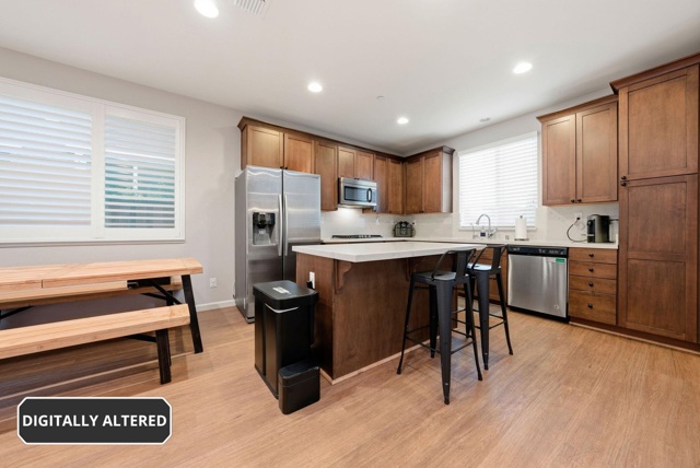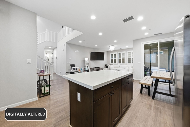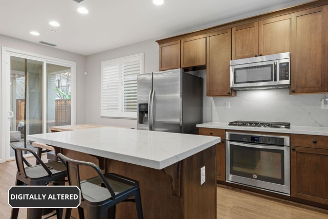 Thoughtfully designed for modern living, this beautifully maintained two-story residence offers 1,776 square feet of refined comfort in the heart of Livermore Wine Country. Luxury tile flooring spans the main level, setting a warm and sophisticated tone for the open-concept layout. The living and dining areas connect to a well-appointed chef’s kitchen, anchored by a generous island with seating and finished with white quartz countertops, designer backsplash, rich wood cabinetry, and stainless steel appliances, including a gas range. Abundant natural light enhances the home’s bright, contemporary feel, while the functional layout supports both daily living and entertaining. Upstairs, the spacious primary suite includes ample closet space and an ensuite bath with dual vanities and generous storage. Three additional bedrooms and a full bath provide flexibility for guests, workspace, or everyday living. A private, low-maintenance yard offers space to relax or gather, and the attached two-car garage adds convenience and storage. Perfectly positioned near Lawrence Livermore National Laboratory and just moments from renowned wineries, scenic vineyards, and downtown Livermore, the home offers a strong balance of comfort, style, and convenience, access, and everyday practicality.
