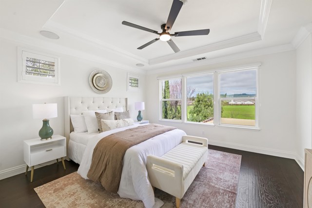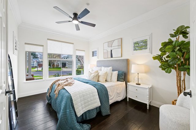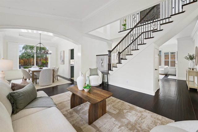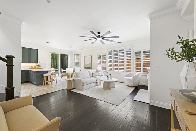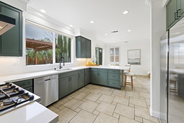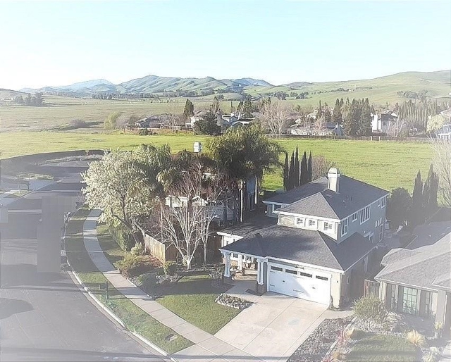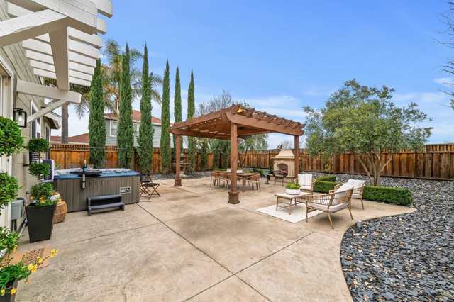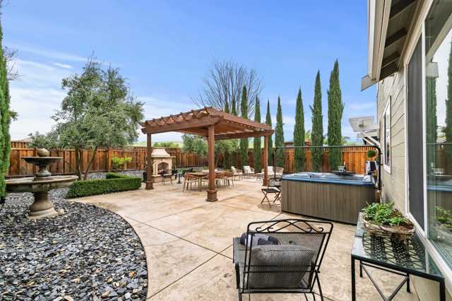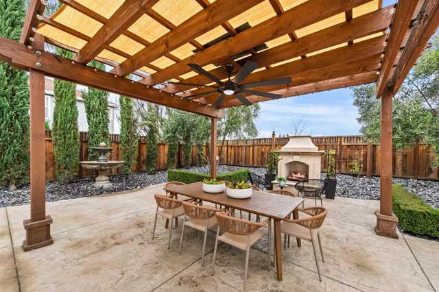 Don’t miss this move-in ready home with NO REAR NEIGHBORS and stunning views of the Livermore Hills and Brushy Peak. From the moment you arrive, the large covered front porch and serene setting make a lasting impression. Step through the SOUTH facing front door into a light-filled interior featuring wide-plank hardwood flooring, custom millwork details, plantation shutters, wrought iron banisters, built-in speakers and upgraded lighting throughout. The remodeled kitchen shines with quartz countertops and backsplash, an Italian gas range, stainless steel appliances, LED recessed lighting, and sleek soft-close cabinetry. The spacious floor plan includes a desirable BEDROOM & FULL BATH DOWNSTAIRS, ideal for guests or multi-generational living. The low-maintenance backyard is an entertainer’s dream-complete with a gas fireplace, elegant three-tier fountain, oversized custom pergola with fan and cantina lights, newer fencing, and freestanding spa. Relax and take in the beautiful hillside views in total privacy. Brand-new washer, dryer, and refrigerator are included — just turn the key and move right in!