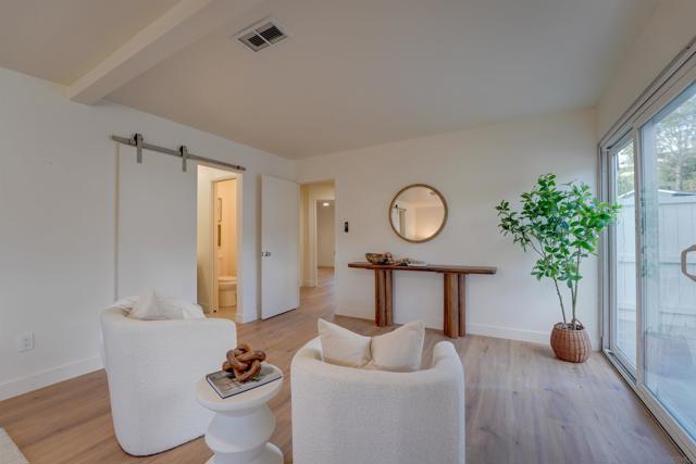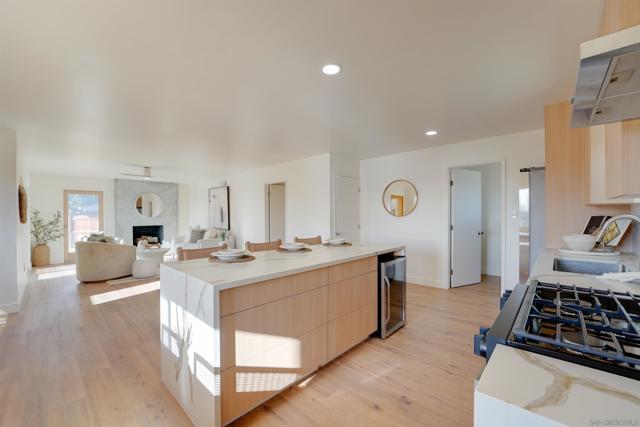 Single level California Organic Bay Park home on quiet cul-de-sac. The ultimate blend of contemporary luxury and laid back coastal style. Step into an open concept living area full of natural light that flows into patio/backyard space perfect for entertaining and play. Chefs kitchen features gorgeous euro-cabinetry, large island with built-in beverage fridge & stone waterfalls, high end s/s appliances, abundant storage & spacious pantry. Adjacent dedicated laundry room with high end s/s equipment. Natural light pours into the dining area, creating the perfect atmosphere for everything from casual meals to elevated dinner parties. Dreamy spacious primary suite w/ walk in closet and spa like ensuite bathroom with dual vanity, oversized rain shower and toilet. Primary sliding door leads to private patio and gazebo covered hot tub. Second bathroom features tub/shower. Central heating & ceiling fans in every space. 2 more sizable bedrooms. Large detached 2 car garage. Enjoy sea-world fireworks and hillside canyon views from living room. Near beaches, Mission Bay, USD, hiking trails, San Diego Tennis Racquet Club and freeway access.