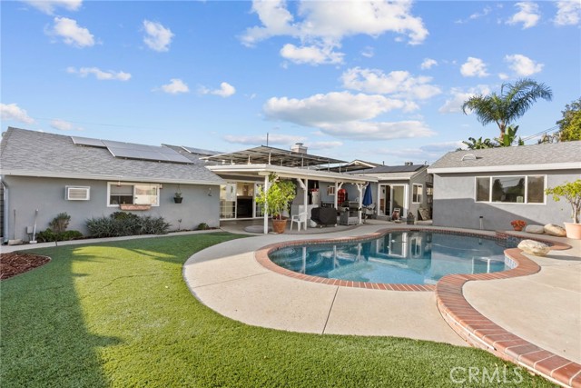 Welcome to this Texas Tract beauty — 3042 Austin. This single-story pool home with a permitted workshop is ready for you. This 3-bedroom, 2-bath home blends comfort, an open floor plan, and great curb appeal, highlighted by low-maintenance turf in both the front and backyard. Inside, you’ll love the flow of the home and thoughtful upgrades already completed, including newer heating and air conditioning, a tankless water heater, and a 200-amp electrical panel. The attic has been professionally sanitized and upgraded with blown-in insulation for added comfort and energy efficiency. The heart of the home is the kitchen — open and inviting with an island built for entertaining, crisp white cabinets with updated hardware, and a ZLINE range that’s perfect for anyone who loves to cook. You will also enjoy the expanded primary suite featuring closet built-ins designed to organize your wardrobe, plus a gorgeous primary bathroom with towel warmers — creating a true spa-like retreat. One of the standout features of this property is the permitted approximately 450 sq. ft. workshop complete with power — Ideal for a contractor, hobbyist, home gym, storage, or creative space, and with the potential to convert into an ADU to generate rental income or create the perfect space for extended family. In addition, there is an extra room behind the garage that could be used as an additional bedroom, bonus room, or the perfect home office setup. Step outside to your private backyard retreat with a sparkling pool & fresh landscaping — a true SoCal lifestyle yard built for weekends, BBQs, and summer nights. The home also includes a substantial solar system with multiple panels, helping reduce long-term utility costs. This is a rare opportunity to own a Texas Tract pool home with valuable permitted bonus space, major upgrades already done, and the kind of functionality you are looking for.