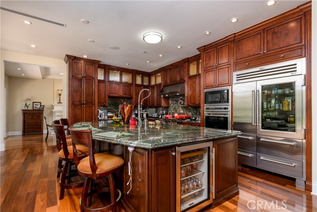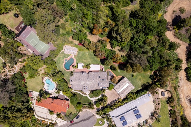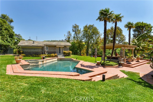 Offering an extraordinary 7,929 square feet of combined living and garage space, this exceptional La Habra Heights estate is a rare gem that promises a lifestyle of sophistication, comfort, and exclusivity. The main residence spans 5,355 square feet, complemented by a 574-square-foot guest house and a 2,000-square-foot, 12-car garage featuring two double lifts. Nestled at the end of a tranquil cul-de-sac, this custom-built home is surrounded by Brea’s open hills, ensuring privacy with no neighbors directly behind. Inside, the gourmet kitchen features premium Wolf and Sub-Zero appliances, including two dishwashers, three ovens, a 48” range, and a warming drawer, all centered around an 11x7-foot island. The 574-square-foot guest house includes a bedroom, kitchen, bathroom, and laundry room. Designed for both relaxation and entertainment, the home boasts a media room with a large TV and 10 additional TVs throughout the property, all of which will remain with the home. The media room also features a dropdown 130" projection screen, perfect for movie nights or watching the big game, as well as a custom couch and a wet bar with a Sub-Zero mini fridge. The bar room opens directly to the front yard and provides a seamless transition to the raised infinity 12-person hot tub, offering breathtaking views of the Orange County city lights. This smart home integrates the latest in home automation, giving you control over lighting, security, temperature, and even the pool through your phone or the mounted screens throughout the home. Custom motorized shades and smart panels enhance convenience and comfort, while the expansive open layout is perfect for both intimate and large-scale entertaining. The backyard includes a stunning pool and spa adjacent to the guest house. Covered patios provide ample seating and space for outdoor dining, featuring a Viking BBQ, fire pit, and outdoor fireplace, perfect for enjoying Southern California’s year-round mild climate. The large, flat acre lot offers an abundance of grass and room for a variety of outdoor activities. For added peace of mind, the home is equipped with a natural gas backup generator. The current owner also owns an additional parcel directly across the street, which is available for purchase. With its expansive square footage, high-end finishes, and serene surroundings, this estate offers an unparalleled living experience in one of La Habra Heights’ most sought-after locations.