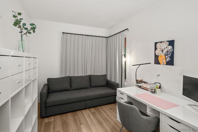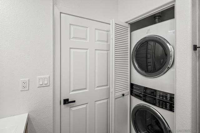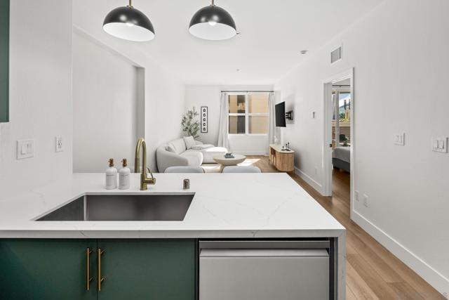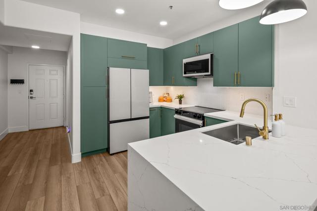Welcome to luxury urban living in San Diego’s prestigious Marina District, directly across from the Convention Center. This newly remodeled 2-bedroom, 2-bath residence offers a bright, open floor plan. The stunning kitchen features new cabinetry, quartz countertops, and Samsung Bespoke appliances. The spacious primary suite includes a beautifully remodeled bathroom, with gorgeous tiled shower and generous walk-in closet. Enjoy indoor-outdoor living on your private balcony overlooking the Convention Center, complete with additional storage closet. Highlights include central heating and air conditioning, in-unit washer and dryer, and two exclusive gated parking spaces. The secure building offers electronic access, two elevators, and convenient trash chute. Residents enjoy premium amenities including a fitness center, game and community room, rooftop lounge with BBQ area, and inviting spaces for relaxation and entertaining. HOA dues include water, sewer, trash, common area maintenance, and high-speed Google Fiber internet, creating a truly turnkey downtown lifestyle opportunity. This is not one to miss!