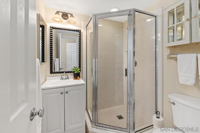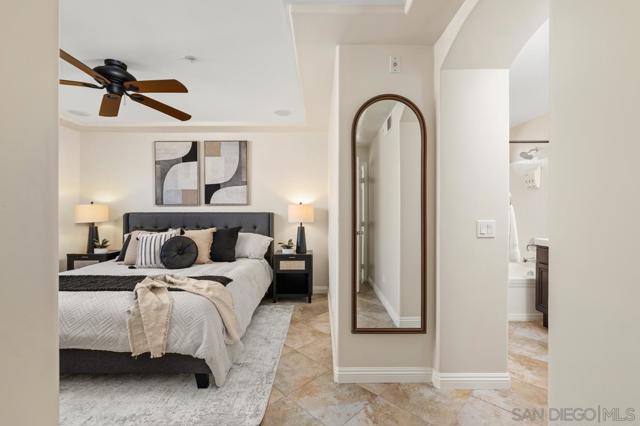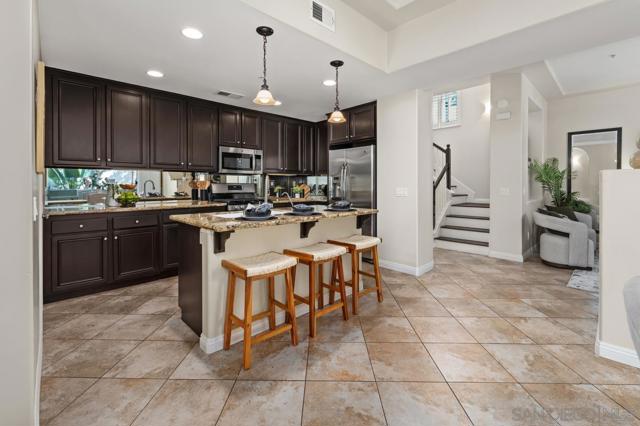 Beautiful corner townhome in the heart of Liberty Station, just steps from the 46-acre waterfront park and walking paths. Overlooking a tranquil fountain and park-like greenbelt, this light-filled 3-bedroom, 3.5-bath residence offers 1,597 sq. ft. of thoughtfully designed living space. Ideal layout with a bedroom and en-suite bath on each level, including two primary suites, plus a half bath off the kitchen dining area. The open living and dining room features soaring ceilings, abundant windows, a fireplace, and access to a spacious balcony. The kitchen is equipped with granite countertops, stainless steel appliances and a large pantry, flowing seamlessly into the dining and living areas Travertine stone flooring throughout with lvp accents add timeless appeal. Walk-in closets, ceiling fans, A/C, main-level laundry, and a two-car attached garage provide everyday comfort and convenience. Lovingly maintained as a gently used second home for 22 years, this home reflects true pride of ownership. Unbeatable location near Liberty Station shops, fine dining, parks, schools and the waterfront — this is coastal living at its very best.