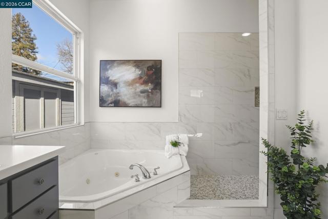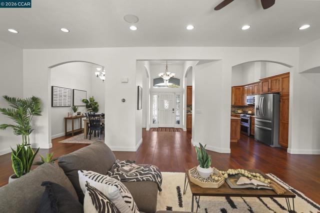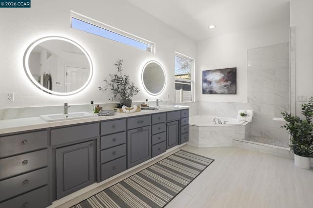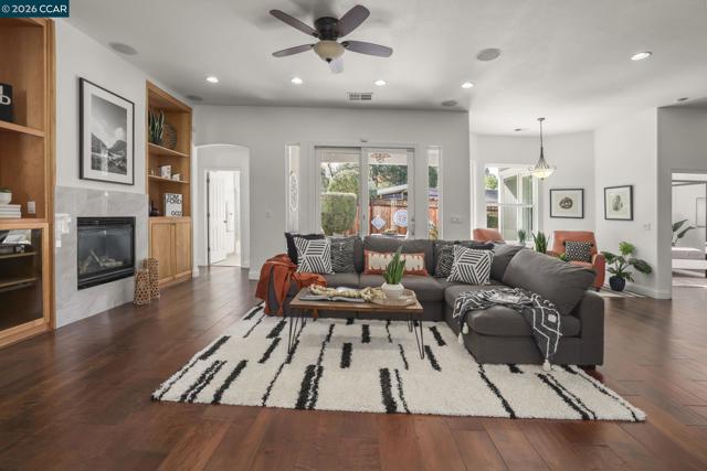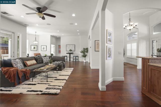 Welcome to beautiful Martinez — a historic waterfront town in the heart of the East Bay! Built in 2000, this SENSATIONAL single-story 4-bedroom, 3-bath home features tall ceilings, an open-concept layout, wood flooring throughout & abundant natural light from expansive windows. The updated kitchen shines with stainless steel appliances and modern fixtures, flowing seamlessly into the main living areas. Renovated spa-inspired primary bathroom showcases designer tile, dual vanities, double shower-heads, LED mirrors, and a walk-in closet with custom California Closet systems. Situated on a flat .38-acre corner lot, the property offers exceptional outdoor space & flexibility. Brand-new perimeter fencing with gated side access provides ideal potential for RV, boat, or additional parking. The expansive backyard offers ample room for a pool/ADU, the covered patio with recessed lighting and ceiling fan creates the perfect setting for entertaining. Additional highlights include: Solar lease, Brand-new HVAC system, manicured landscaping, generous driveway parking! Ideally located w/convenient access Highway 4, minutes to shopping, dining! Fantastic Schools!!! A RARE, EXPANSIVE, SINGLE STORY! Your dream awaits you!