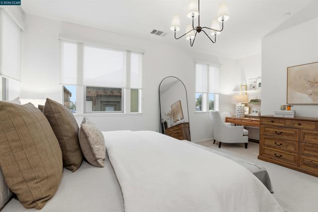 Built in 2024, this well-designed four-bedroom, three-and-a-half-bath home offers approximately 1,929 square feet of thoughtfully planned living space and a two-car garage. The bright, open-concept layout features abundant natural light, neutral finishes, and a smooth flow throughout. The designer kitchen includes premium appliances, generous cabinetry, and ample counter space. The primary suite provides excellent square footage, a large walk-in closet, and a beautifully appointed bathroom. Additional bedrooms and baths feature quality materials and clean well-crafted details. Upgrades include owned solar, AT&T fiber connectivity, a tankless recirculating water heater, and a built-in surround sound system. Conveniently located just minutes from downtown Livermore, parks, and local amenities, this home offers comfort, efficiency, and everyday ease.