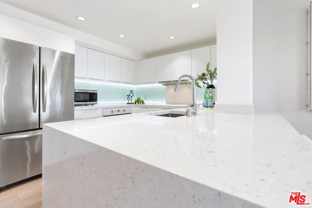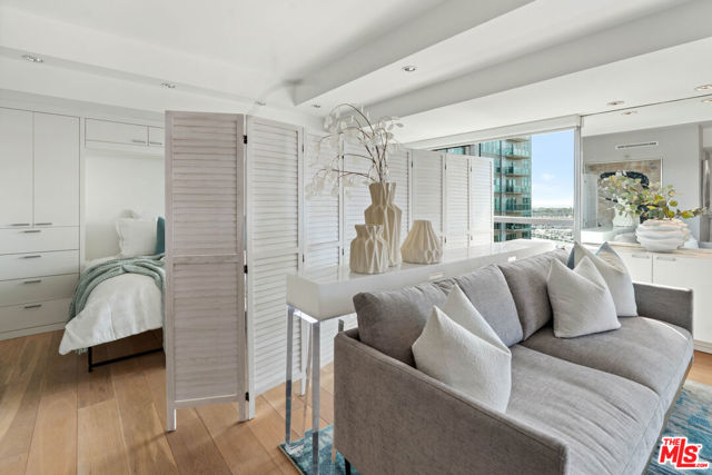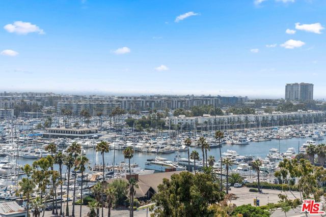 Breathtaking ,panoramic OCEAN, MARINA and SUNSET views from this turnkey, upgraded one-of-a-kind quiet, bright corner unit with balcony, nestled within the prestigious Azzurra. This unit features stainless steel appliances, glass backsplash, quartz countertops, breakfast bar, custom walk-in closets, built-ins, dedicated laundry area, Lutron lights and shades, built -inwall safe, and new water heater. Open architecture creates a grand one bedroom, easily converted with a wall or screen to a second bedroom with privacy and ample built-in storage. Included is convenient parking for 2 vehicles and a new adjacent EV charger. Enjoy concierge services, valet parking for guests, conference rooms, media lounge, pool with cabanas, indoor/outdoor gym, Pilates/yoga studio, and inviting dog park. The Sky Lounge with rooftop spa is spectacular! The Azzurra is a convenient walk to all shopping, restaurants, library, hospital and an easy10 minute drive to LAX airport!