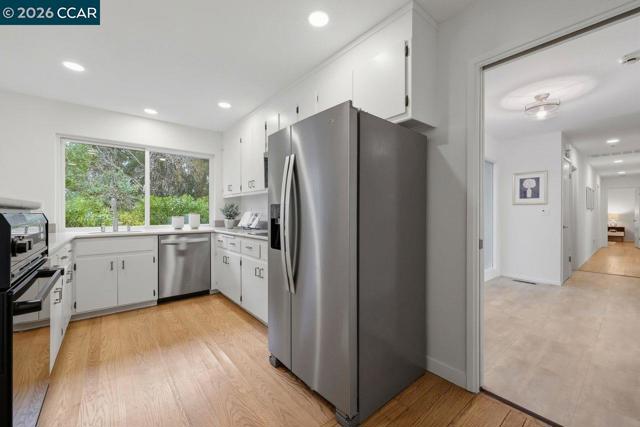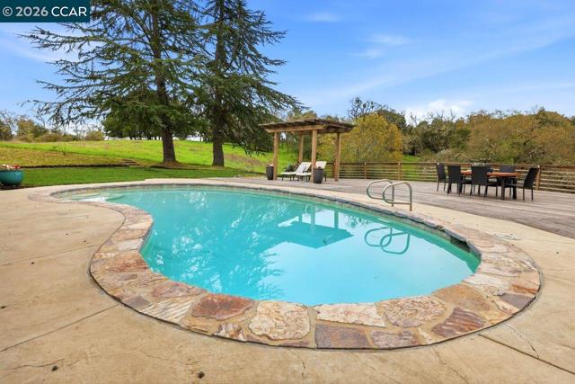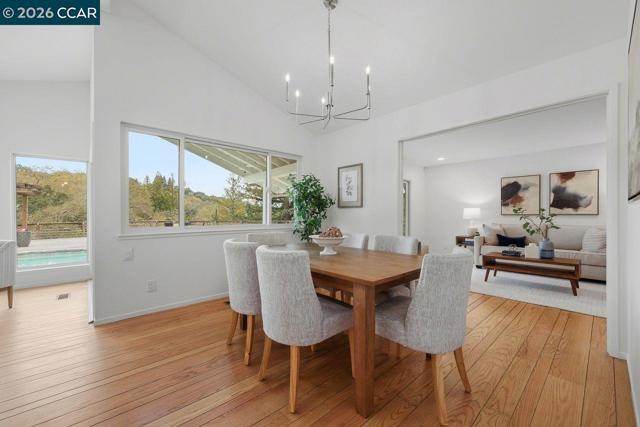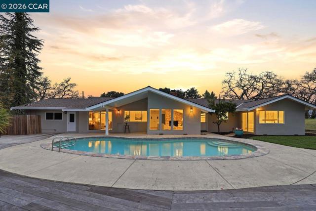 3927 Woodside Ct, is the definition of indoor-outdoor living! Located at the top of Woodside Ct on Lafayette's west end, this private & serene home, with panoramic Mt. Diablo views features 4 bedrooms, w/an expanded primary suite, 2 updated bathrooms, a family room off the kitchen, a bonus/laundry/yoga/office room off the garage, refinished HW floors throughout, fully updated LED lighting and electrical, NEST, new fixtures, fresh interior paint, new entry flooring, a new garage door, new landscaping and a 5 year old roof. Step through the inviting double door entry, and be immediately captured by soaring ceilings in the living room, including a large wood-burning fireplace, a dedicated dining area, oversized windows and a sliding door opening to a sparkling pool and a view that goes forever. The one acre plus property features oak studded hillsides, redwoods, relaxation and peace. Spend time on the Brazilian IPE sustainable HW deck that wraps around the back side of the pool. Relax and watch for gliding hawks flying above as the sun sets. Fresh landscaping allows for lawn play. A fantastic commute location places you close to two downtowns, 2 BARTS, award-winning schools, Oakwood Athletic Club and direct access to the the Lafayette Reservoir Rim Trail right out the door. Views: Ridge