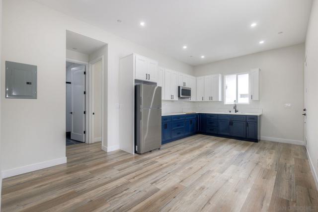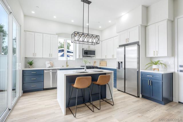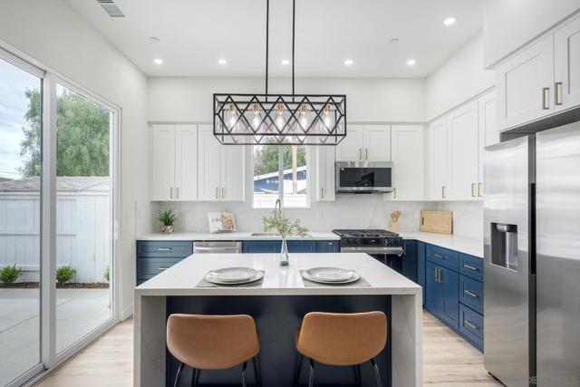 Is it one unit or two? This brand-new 2025 construction offers the flexibility of both. The property features 4 bedrooms, 4.5 bathrooms, and approximately 2,200 sq. ft. of thoughtfully designed living space. Including a private-entry attached "Gen Suite" that functions like a separate one-bedroom, one-bath unit with its own living area, kitchenette, laundry, and separate access—ideal for multigenerational living, guests, or rental income potential. The main residence showcases soaring 10-foot ceilings, abundant natural light, a dedicated office space, and walk-in closets throughout. At the center is a designer kitchen with a large island, quartz countertops, custom two-tone cabinetry, stainless steel appliances, gas range, and generous storage. Sliding glass doors create seamless indoor–outdoor flow to the patio for easy entertaining. Additional highlights include multiple balconies and patios, laundry on both levels, and a spacious two-car garage. Located in a quiet neighborhood with no HOA, this ground-up build combines modern design, versatility, and move-in-ready convenience.