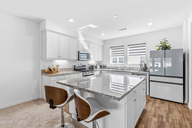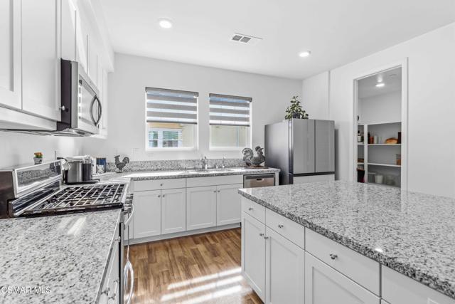 Welcome to Citrus Groves, a modern community built in 2022 offering style, comfort, and convenience. This light and bright tri-level home features 3 bedrooms, 2.5 bathrooms, and 1,805 sq.ft. of thoughtfully designed living space. The first level opens with a formal living room, leading to an expansive second level with an open-concept layout. Enjoy a gourmet kitchen with an oversized island, abundant cabinetry, granite countertops, modern Energy-Efficient built-in appliances, and a large walk-in pantry. The spacious family room includes a generous media niche, perfect for entertaining, along with a convenient powder room. The third level hosts a private primary suite with a walk-in closet and ensuite bath, plus two additional spacious bedrooms, a full bathroom, and an upstairs laundry room with washer and dryer included. Additional highlights include recessed lighting throughout, custom window coverings, an attached 2-car garage, paid solar panels and tankless water heater. Low HOA dues, no Mello-Roos, and a prime location close to shopping, parks, hiking, bike trails, and scenic views make this a truly exceptional home.