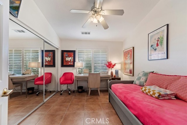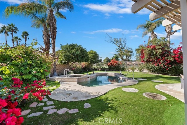 Tucked away at the end of a peaceful cul-de-sac in Indian Palms Country Club, this stunning home offers a perfect blend of luxury and tranquility. Enjoy the convenience of being within walking distance to the Coachella and Stagecoach Fairgrounds, with Downtown Indio just a short drive away. Step into a bright and open layout featuring a spacious living and dining area bathed in natural light from high ceilings and expansive windows. The home includes four generously-sized bedrooms, highlighted by a luxurious master suite with a beautifully appointed ensuite bathroom, as well as a private casita with its own entrance and ensuite bathroom, perfect for guests or family. Outside, relax in your own paradise with a gorgeous pool and jacuzzi, complemented by sweeping views of the lush golf course and enhanced privacy from thoughtfully placed bougainvillea. The expansive outdoor space is ideal for al fresco dining, allowing you to soak in picturesque scenery. With incredibly low HOA fees and the option to rent the home for 30 days or more, 82184 Crosby Dr. is a fantastic opportunity for either a primary residence or an investment property. Embrace the lifestyle you’ve always dreamed of—don’t let this opportunity slip away!
