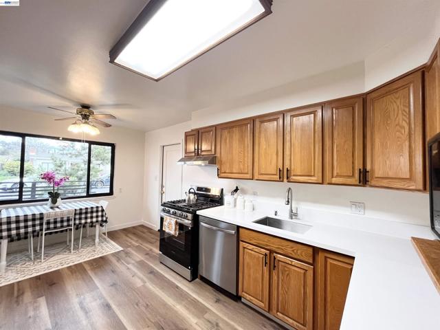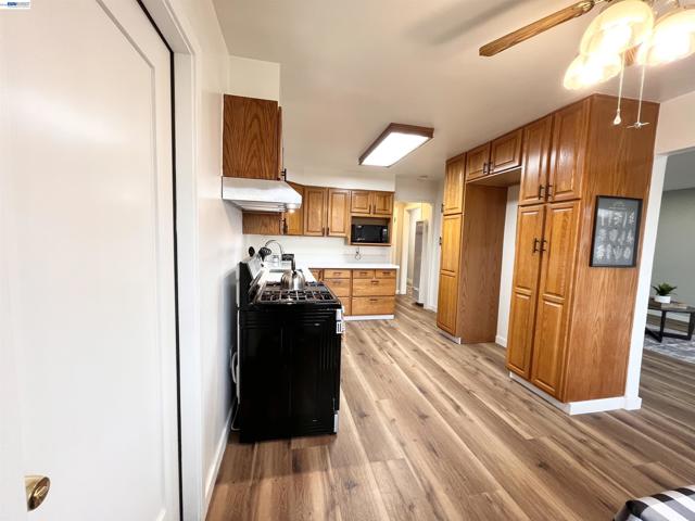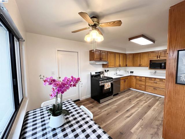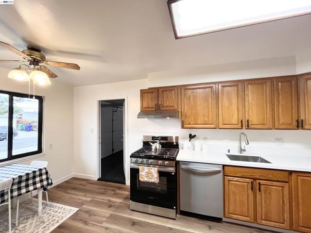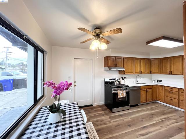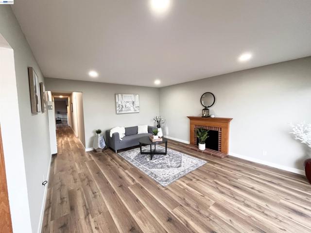 Nestled near vibrant downtown Pinole, this charming home features four bedrooms and two full bathrooms. The bright, modern eat-in kitchen is equipped with new stainless steel appliances and flows seamlessly into the spacious living room, which boasts vinyl laminate floors and a cozy fireplace. The primary bedroom includes an en suite bathroom. Additional rear famliy room can be used as a den or office. Enjoy low-maintenance landscaping in the front yard and 2 storage sheds in the back. The generous backyard offers a covered patio perfect for entertaining and privacy. Located just steps from Fernandez Ball Park and Playground, this home provides convenient access to shopping, restaurants, Kaiser Permanente, coffee shops, and farmer's market.