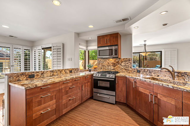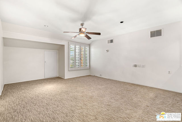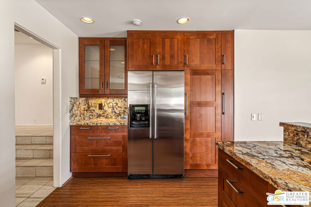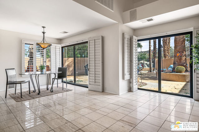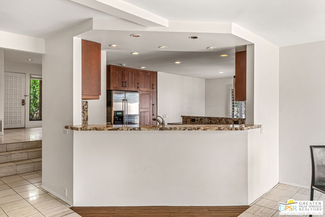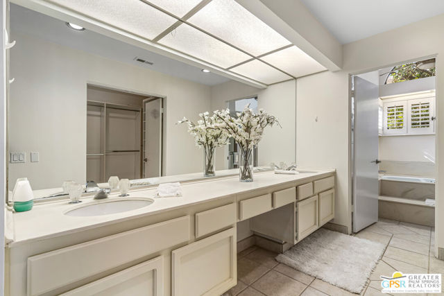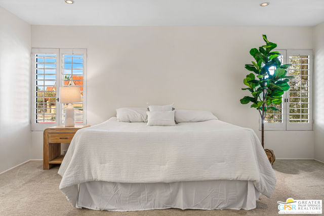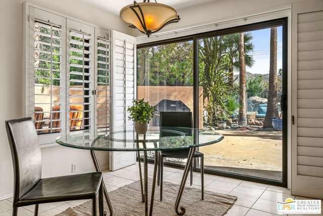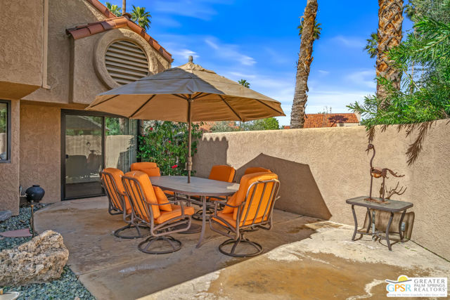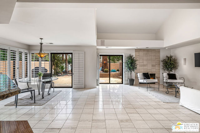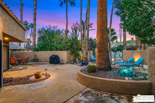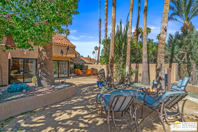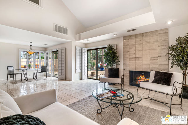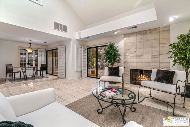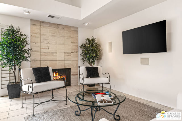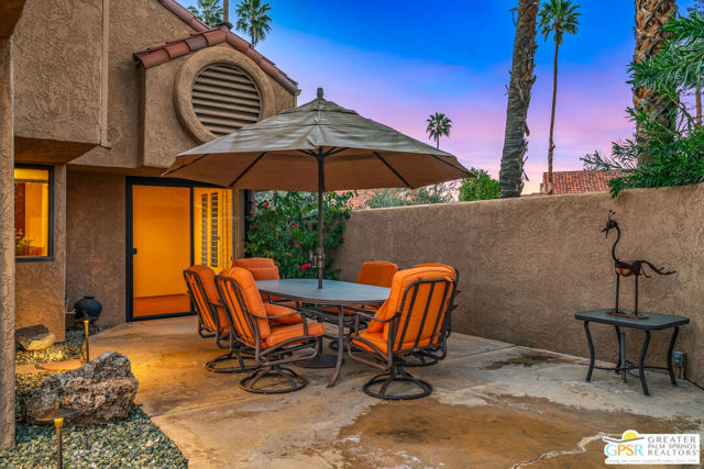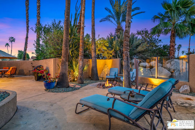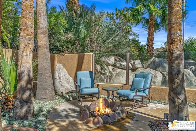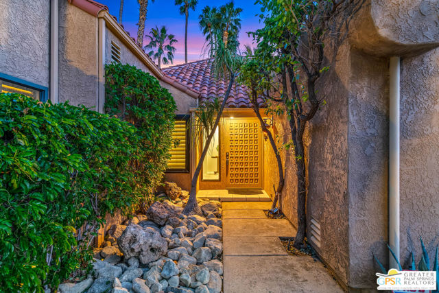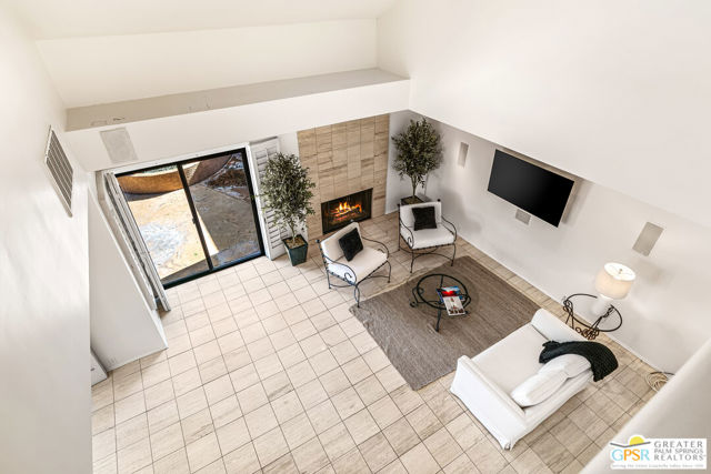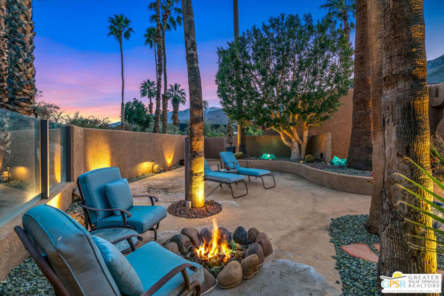 Palm Springs, spacious condo, on Fee land (no lease) in the desirable "South End" of Palm Springs. 2190 square feet of living space with 2 beds, 2.5 baths, a large private gated yard with multiple entertaining areas and fire features. Inside: foyer entry, vaulted ceilings, living room with fireplace, dining area, updated kitchen, breakfast room, dual suites- suite 1 is downstairs/main level with walk-in closet, double-vanity, soaking tub and stall shower, upstairs 2nd suite with bath. Generous size rooms, loads of gallery spaces, soaring ceilings, and loft area. An attached air conditioned garage with direct access. The Canyon Heights community is a low density community next to the San Jacinto mountains, offering stunning panoramic views of the surrounding desert landscape, Oswit Canyon Preserve and Lyyken Trail. Amenities include gated resort style living pool/spas, tennis & pickle-ball courts, clubhouse/meeting room, fitness room, gated dog park, and gated access to the Lykken hiking trail/ Oswit Canyon Preserve, two golf courses nearby, & minutes to downtown Palm Springs. Perfect Palm Springs lifestyle property. Fee Land (no lease).