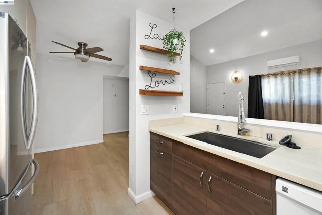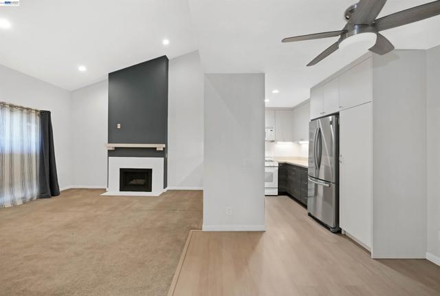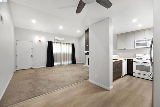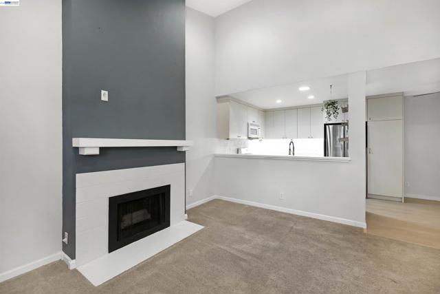 Beautiful top-floor condo featuring soaring cathedral ceilings and abundant natural sunlight. This spacious 1 bedroom, 1 bathroom home offers a huge bedroom, updated kitchen, newer flooring, cozy fireplace, and convenient in-unit indoor laundry. Located on the third floor with plenty of storage and a designated parking space. Enjoy the security of a gated community with resort-style swimming pools and lush grounds. Prime Fremont location close to shopping, restaurants, major Silicon Valley employers, and easy access to highways and commute routes. Situated within highly regarded Fremont schools.
