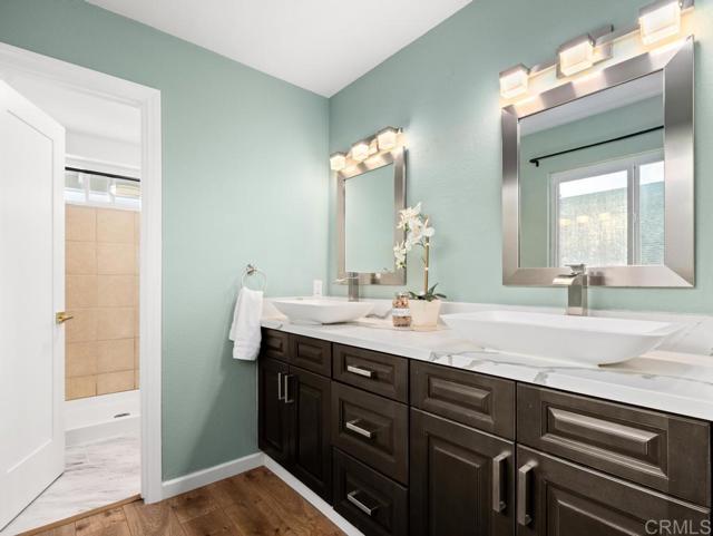 Set in the sought-after Penasquitos Bluffs enclave of Rancho Peñasquitos, 12705 War Horse Street delivers elevated canyon living with effortless entertaining. This updated 4-bedroom, 2.5-bath home offers approx. 1,700 sq ft, a 2-car garage, owned solar, and a resort-style yard featuring a refurbished pool & spa (2022) with safety fencing, lush landscaping, an outdoor shower, and a solar pool hot water heater for year around swim season. Backing to designated open space, enjoy rare privacy, cool coastal breezes, western views, and vibrant sunsets. Inside, a flowing layout showcases an updated kitchen, refreshed baths, recessed lighting, and modern finishes designed for busy days and memorable gatherings. Outdoor living shines with a spacious primary patio deck and generous yard space for dining, play, and hosting under the San Diego sky. Close to top-rated Poway Unified schools, moments from Los Peñasquitos Canyon Preserve trails, and convenient to beaches, shopping, and downtown, with no HOA or Mello-Roos.