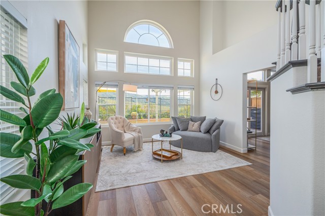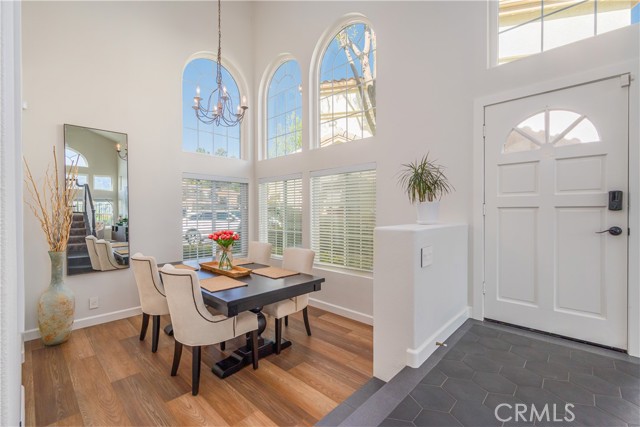 Wake up every morning to spectacular views from this beautifully remodeled Yorba Linda home. Step into light filled living areas with 2 story ceilings and huge windows. You feel the quality the moment you walk in. Nearly every surface has been tastefully updated including flooring, paint, moldings, light fixtures, even the winding staircase. The living room looks out to canyons and hills. The formal dining area opens to an updated kitchen with white cabinets and premium appliances. Chefs will love the high performance gas range and convection oven. Off the kitchen, find a breakfast nook, powder room, and family room with a cozy fireplace. Walk out to a California patio. The backyard has a manicured look with high quality artificial turf and planters. Laundry room and direct garage access are off the breakfast nook. Upstairs you will find a Primary Suite with vaulted ceiling and a walk in closet. Drink in those huge views from the big windows! The primary bath is an updated, light filled retreat with tall ceilings and a skylight. Step into a walk in shower or enjoy a soak in the freestanding tub. The hallway looks down onto the first floor and features a long counter with lots of cabinetry for storage. At the other end of the hall are 2 nicely sized bedrooms and another updated bath with glass tile shower. Behind the walls...furnace, AC and water heater have been updated. Roof was updated about 2 years ago. The garage even has 220 for a car charger. La Terraza is a well maintained community with 2 pools, spas, and sport court. The HOA maintains the homes exterior including roof, paint and front yard. Shopping and highway access are close and the schools are excellent including the award winning Yorba Linda High School! Don't miss this outstanding home.