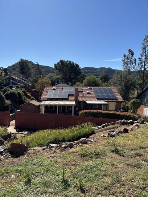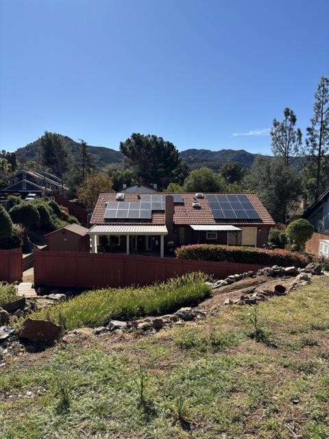 Nestled in the serene green hills, this beautifully designed 3-bedroom, 2-bath home offers the perfect blend of modern comfort and natural tranquility. Set on over half an acre, the property invites you in harmony with nature, surrounded by rolling mountain views and peaceful open skies. This home includes high ceilings and an open concept floor plan that fills the home with natural light. Solar panels includes, jacuzzi and and expansive yard with laid pavers to elevate the outdoor space.