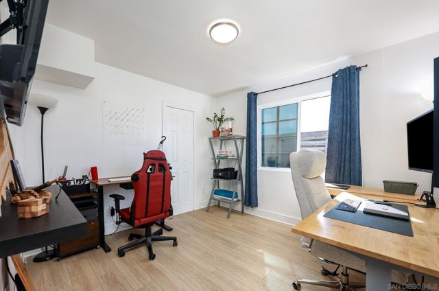 Move-in ready and conveniently located near Plaza Bonita Mall with easy access to the 805 and 54 freeways, this single-level home in the desirable Sweetwater Heights community offers 4 bedrooms and 2 bathrooms with a functional, well-designed layout. The interior has been refreshed with new flooring, fresh paint, and recessed lighting, creating a bright and modern feel throughout. The galley-style kitchen features granite countertops and stainless steel appliances, opening to a comfortable living space centered around a fireplace with a contemporary accent wall. Both the front and backyard are finished with low-maintenance turf, and the backyard also features a deck ideal for relaxing or entertaining. Solar and a Tesla charging station add long-term efficiency and convenience, with Rohr Park’s walking trails and open green space just minutes away.