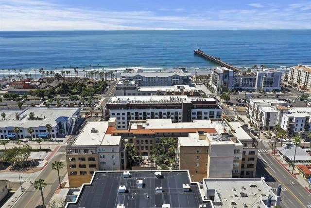 Luxury Penthouse only blocks to the Pier & Beach and Minutes to Oceanside Harbor! This single-story coastal condo is bright and beautiful with 2 Bedrooms, 2.5 bathrooms and den/office that can be converted to a 3rd bedroom. A spacious kitchen and pantry, huge dining area, inviting living room with fireplace and gorgeous hardwood floors throughout, Balconies off the dining room and master bedroom offer outdoor entertaining and relaxation. The gated community features a wonderful outdoor kitchen/BBQ area with a fireplace, fitness center, spa, storage space and 2 underground spaces. Walk to coffee shops, boutiques, breweries & Michelin-star restaurants! In the "Heart of Oceanside". Oceanside is a true SoCal beach town with a laid-back vibe. The city boasts spectacular year-round weather, gorgeous beaches, a historic wooden pier, quaint New England-style harbor, and charming bungalow neighborhoods. Oceanside offers shopping, fine dining, farmers market, boating, whale watching and surfing! Local attractions include Legoland, Seaworld & The San Diego Zoo. The train station makes it easy and fun to go downtown San Diego or up to Los Angeles to enjoy sporting events, concerts or visit family and friends!