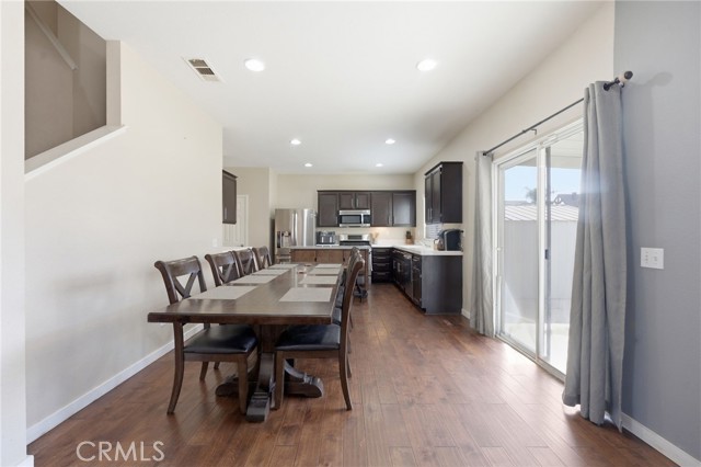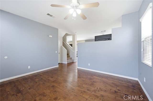 Beautiful two-story home offering 3 bedrooms, 2.5 bathrooms, situated on a spacious lot in a quiet, established neighborhood with no HOA. This well maintained property reflects true pride of ownership and features a functional, open floor plan ideal for both everyday living and entertaining. Upstairs you will find all three bedrooms, a generous loft that can easily be converted into a 4th bedroom, and a convenient laundry room, along with two full bathrooms. Downstairs features engineered wood flooring, a welcoming formal living room, a cozy family room with fireplace, a dining area, and a kitchen with abundant counter space, ample cabinetry, and recessed lighting. The backyard is fully fenced, designed for low maintenance enjoyment, and features a covered patio. Conveniently located near Lake Perris, local schools, and community parks, this home is an excellent opportunity for first time homebuyers or an investor looking to expand a rental portfolio. Do not miss this opportunity, schedule a showing today!