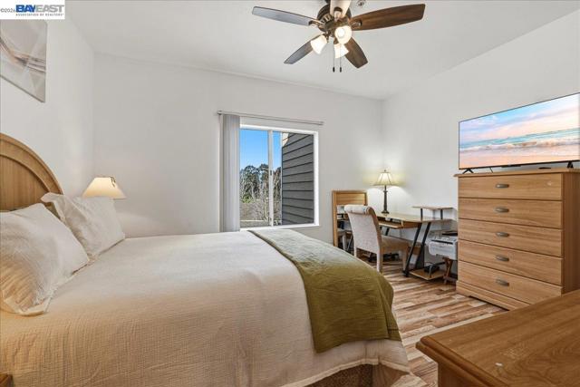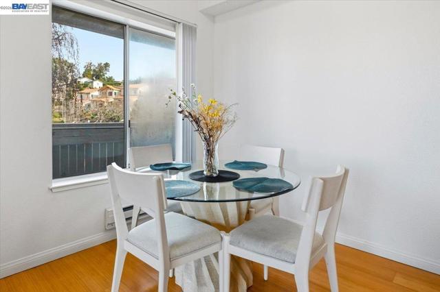 Walking distance to California State University East Bay. Discover this fully furnished light-filled 1-bedroom, 1-bath condo with breathtaking views of Hayward Hills—a space that’s both cozy and effortlessly stylish. The open living area welcomes you with a charming fireplace and flows naturally into the dining space and kitchen, featuring granite countertops and modern cabinetry—perfect for cooking, entertaining, or just relaxing. From the living room, enjoy direct access to your private balcony with serene, tree-lined views—a perfect spot for morning coffee or unwinding after a long day. The bedroom is a peaceful haven, full of natural light, while the community’s lush, green spaces make it easy to enjoy fresh air, host friends, or simply soak in the tranquility. With parks, shopping, dining, and major commuter routes just minutes away, this home combines convenience with privacy. Plus, the HOA covers water and garbage, adding extra value to this move-in-ready gem. A bright, welcoming retreat in Hayward Hills—truly a place to call home. Currently ran as an airbnb with a 3 year track record of $3000/mo. 30 day minimum rentals.