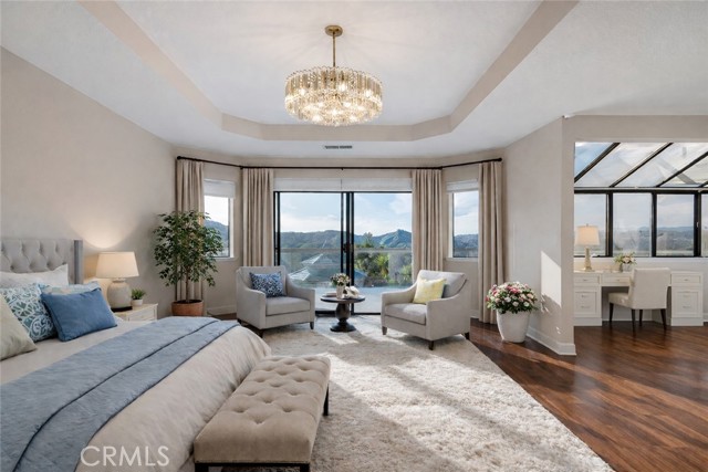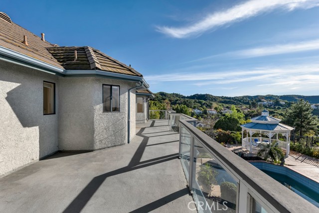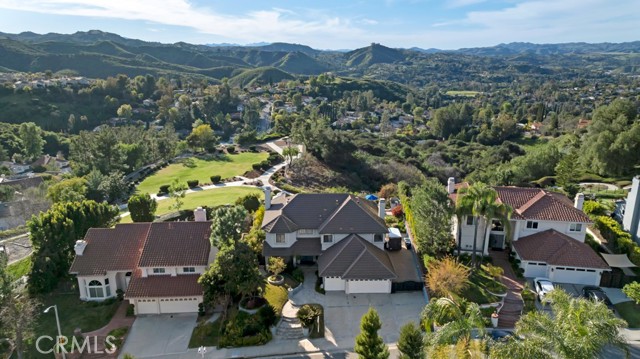 Magnificent Oxford model with views, views, and more views—breathtaking panoramic vistas of the mountains, neighborhood, and park, paired with spectacular sunsets. Located in the exclusive and prestigious Mulholland Heights community of Calabasas, this two-story residence offers nearly 3,800 square feet of living space with 5 bedrooms and 3.5 bathrooms. The functional floor plan includes one bedroom and one-and-a-half bathrooms downstairs, ideal for guests, multigenerational living, or a home office, with four bedrooms upstairs. The expansive primary suite features a large walk-in closet, an oversized bathroom, and a private balcony positioned to capture the dramatic views and sunsets. The backyard offers excellent potential for enhancement, with an existing pool, multiple lounging and sitting areas, and mature fruit trees, all set against a stunning scenic backdrop—an ideal foundation to create a truly resort-style outdoor living space. This home presents a rare opportunity for a buyer to reimagine and personalize a property with a well-proportioned layout, a prime view lot, and an unbeatable location—perfect for those looking to create a custom dream home in one of Calabasas’ most sought-after neighborhoods. Residents enjoy access to a private neighborhood park, patrolled security, top-rated Calabasas schools, nearby hiking trails, and endless outdoor activities. Conveniently located close to the freeway and Gelson’s shopping center. HOA dues include private security, neighborhood park, landscaping and common area maintenance, as well as a Spectrum package with high-speed internet and multiple streaming channels. Property is being sold in "as-is" condition. Seller will not provide repairs or credits.