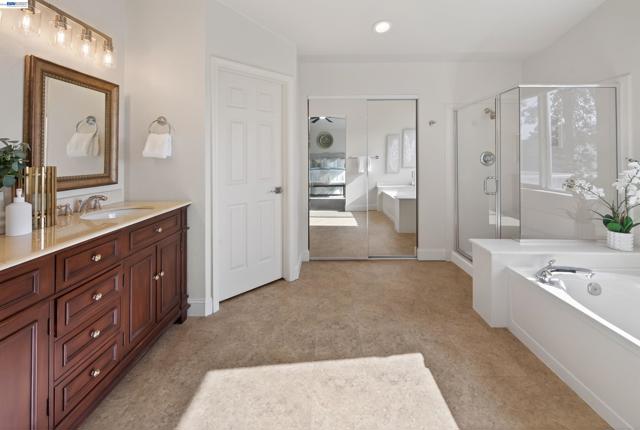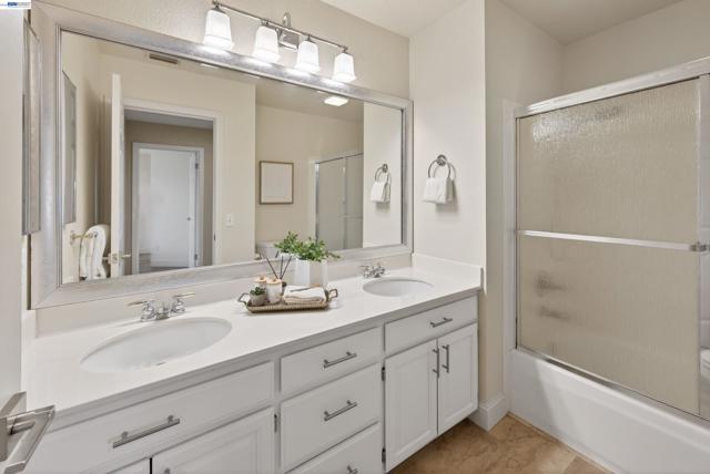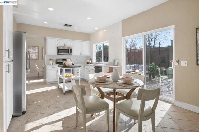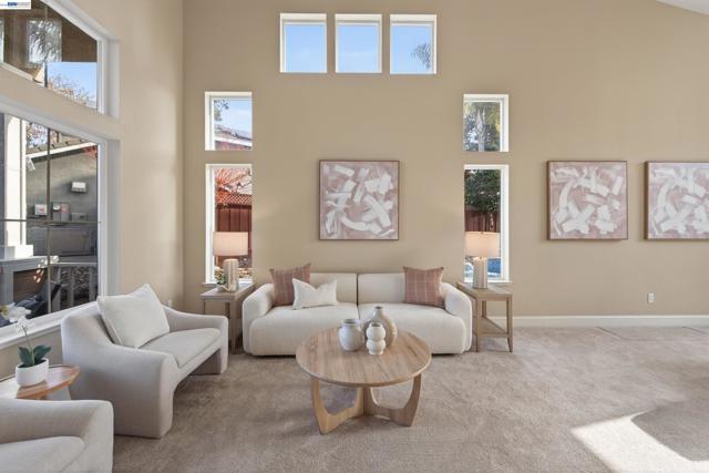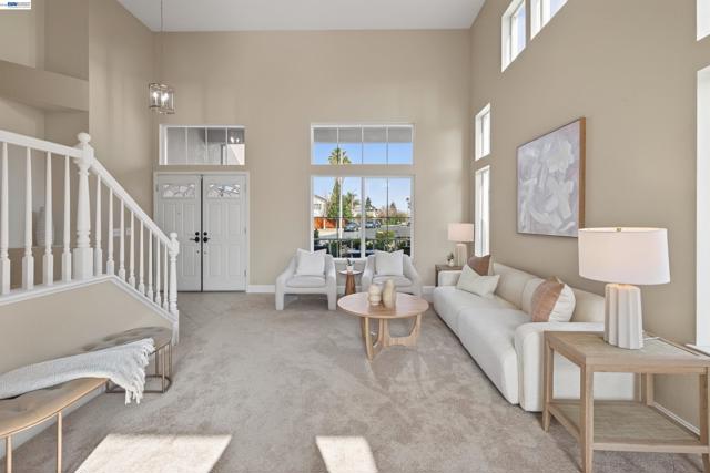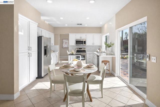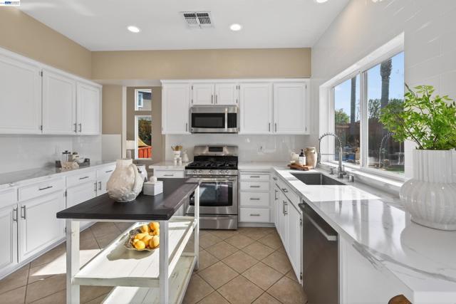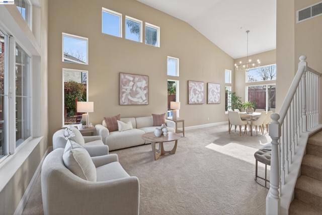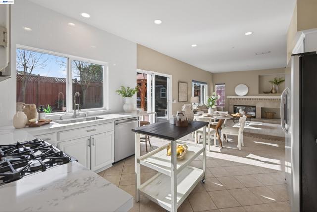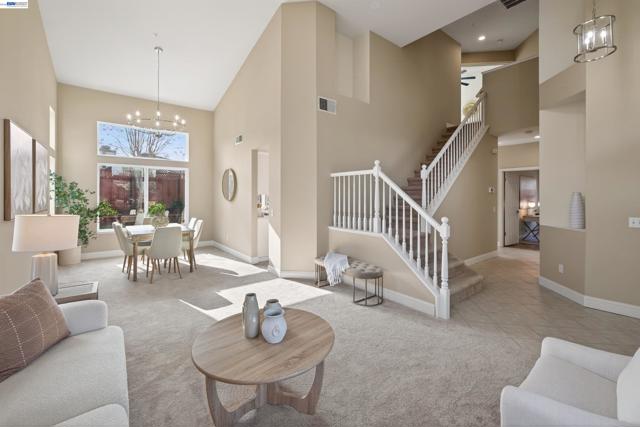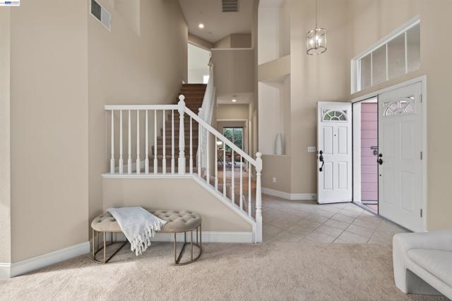 Welcome to this beautifully updated home featuring a highly desirable floor plan and a true backyard retreat! A NORTH FACING front door welcomes you into a light-filled interior with soaring two-story ceilings in the living and dining rooms, creating an airy and open atmosphere perfect for entertaining. The remodeled kitchen is a standout with QUARTZ COUNTERTOPS, gas range, subway tile backsplash, and a stylish accent wall, offering both modern design and everyday functionality. A FULL BEDROOM with walk-in closet AND BATH DOWNSTAIRS provide ideal flexibility for guests, multigenerational living, or a home office. Upstairs, retreat to the spacious primary suite complete with a private balcony, walk-in closet, and a spa-inspired bath featuring a walk-in shower, separate soaking tub, and a newer vanity with double sinks. Step outside to your backyard oasis showcasing a sparkling pool and spa with waterfalls, designed for year-round enjoyment. Entertain in style under the covered outdoor BBQ pavilion with built-in refrigerator and a cozy fire feature—perfect for relaxing evenings. Additional highlights include SIDE YARD ACCESS and a custom storage shed for added convenience. This home offers the perfect blend of comfort, style, and indoor-outdoor California living.