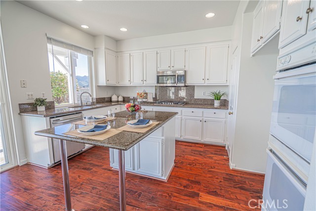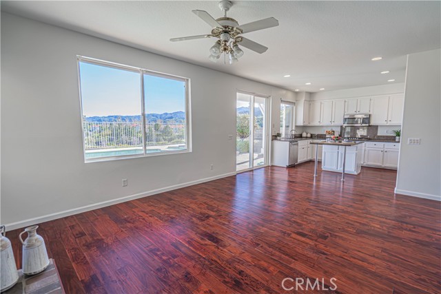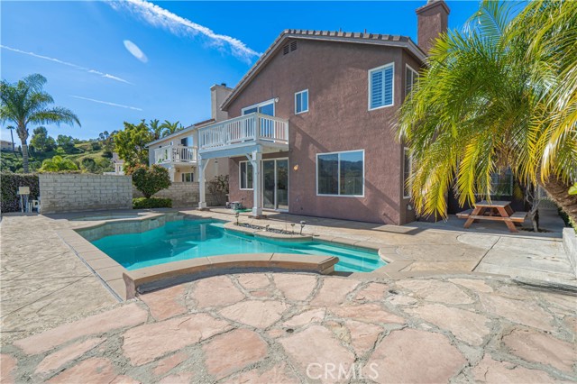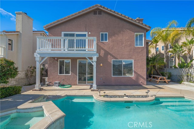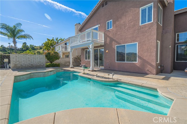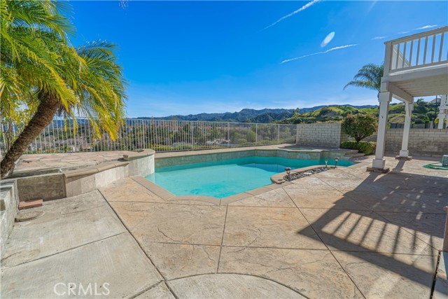 Set on a premium view lot in Stevenson Ranch, this 4-bedroom, 3.5-bath home offers 2,600+ sq ft of bright, functional living space designed for everyday comfort and effortless entertaining. High ceilings and an open layout create a natural flow, with expansive windows bringing in light and framing the surrounding mountain and city views. The kitchen anchors the home with a center island, double ovens, ample cabinetry, opening directly to the family room with fireplace. A formal dining room provides additional space for hosting, while a downstairs bedroom adds flexibility for guests, multigenerational living, or a dedicated office. Upstairs, a large versatile loft offers space for relaxing or entertaining. The primary suite features a private balcony with sweeping views, a spacious en-suite bath with dual vanities, soaking tub, separate shower, and closet. Two additional bedrooms and two full bathrooms complete the upper level, offering comfort and functionality. Step outside to a backyard designed to capture the setting—featuring a private pool and spa alongside expansive, unobstructed city and mountain views that create a striking backdrop for relaxing or entertaining. Additional highlights include paid solar, 3 car garage, and a laundry room with sink. Located close to shopping, restaurants, schools, parks, and easy freeway access, this home offers a balanced lifestyle in one of Stevenson Ranch’s most desirable communities.