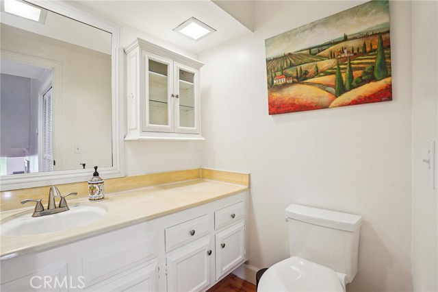This beautifully maintained split-level, 2-bedroom, 2.5-bathroom home includes a versatile, oversized loft with custom built-ins, ideal for a home office or media room, or easily convertible into a third bedroom. The remodeled kitchen showcases modern updates and flows seamlessly into the dining area and main living room, which features a cozy fireplace and warm terra cotta and rich wood floors throughout. Updated windows bring in abundant natural light, while the newer A/C system ensures year-round comfort. Upstairs, the spacious primary suite features a private balcony retreat with gorgeous city views. Two upstairs bathrooms and a convenient downstairs powder room provide an ideal layout and plenty of privacy. Additional features include direct access to a one-car garage, an additional one-car garage, ample storage, an interior laundry closet, and a private patio ideal for entertaining or relaxing outdoors. The HOA offers a pool, spa/hot tub, and clubhouse. Move-in ready and thoughtfully upgraded, this home offers style, space, and convenience all in one.