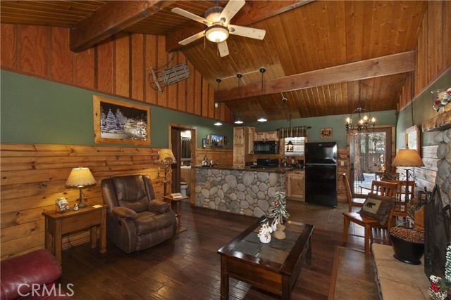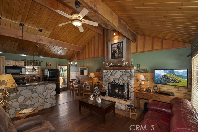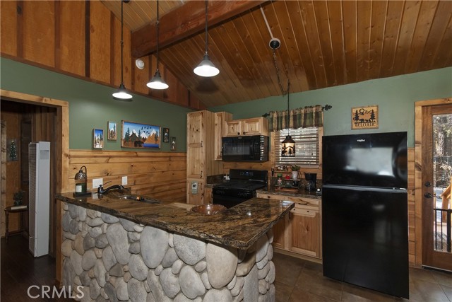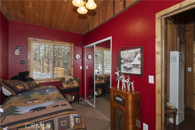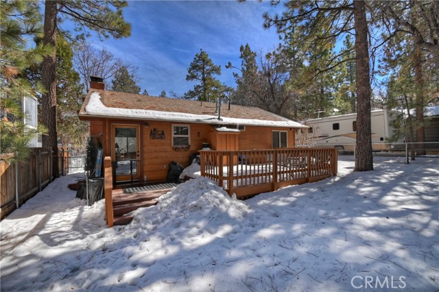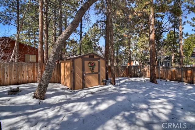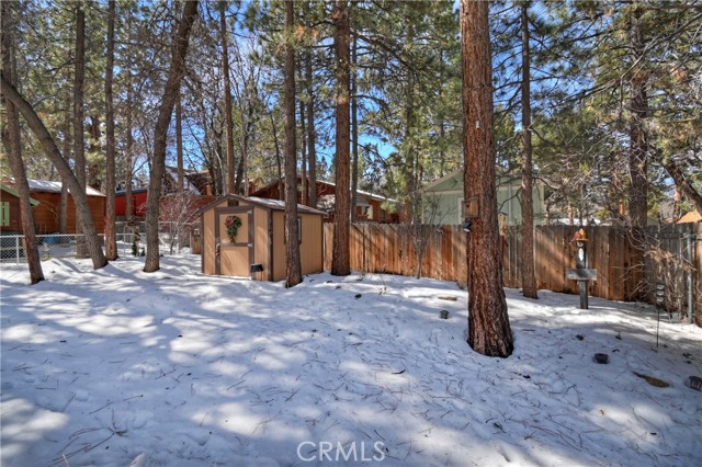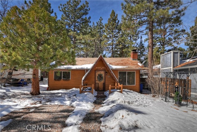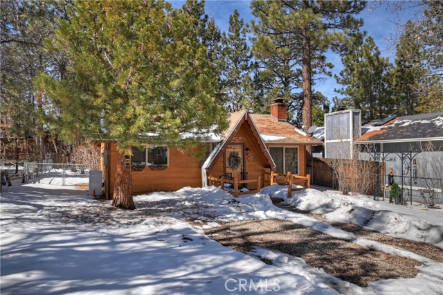 Cute as a button! When you think of a clean, cozy mountain cabin getaway, this one checks ALL the boxes. This charming 2-bedroom, 1-bath home offers 744 square feet of pure mountain character and thoughtful custom touches throughout, and it sits on a spacious 5,000 square foot lot — giving you room to breathe and enjoy true mountain living. From the moment you step inside, you’re welcomed by warm vaulted T&G ceilings, beautiful granite countertops, and rich hickory cabinetry that perfectly complement the cabin aesthetic. The space feels inviting, comfortable, and effortlessly charming. Meticulously cared for, this home is ideal as a full-time residence or the perfect weekend retreat. Think Big Bear’s version of “The Holiday” cabin — intimate, storybook charm with thoughtful touches. Outside, the fully fenced yard is perfect for your furry friends, and the landscaped backyard provides a spacious setting to relax, entertain, or simply enjoy the fresh mountain air. A storage shed offers extra space for tools, toys, and seasonal gear. This hidden gem truly must be seen in person to be fully appreciated.
