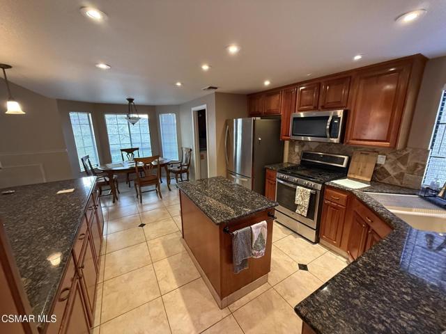 Great opportunity to own a one of a kind Moorpark pool home with no HOA! Its a fantastic residence for those seeking to accomodate multi-generational living with the amazing space it affords everyone. It has 5 bedrooms, 4 bathrooms, vaulted ceilings, a Large primary second floor retreat, with a cozy two sided fireplace into the large primary bathroom. There are 3 bedrooms downstairs, one of which could also be used as a primary bedroom with its own ensuite, that opens up to an amazing built in jacuzzi in the backyard. There is a spacious kitchen with breakfast nook, large island, granite countertops, plenty of cabinets, and opens up to a large family room. The spacious living room also has a double sided fireplace to family room, and both the living and family rooms open up to the beautiful back yard pool with sparkling pool that awaits. The large private backyard boasts a pool, spa, fire pit, covered patio, and is perfect for barbeques and entertaining. This home is a must see. It offers privacy, space, beauty, and is situated in a wonderful neighborhood, close to shopping and great schools.